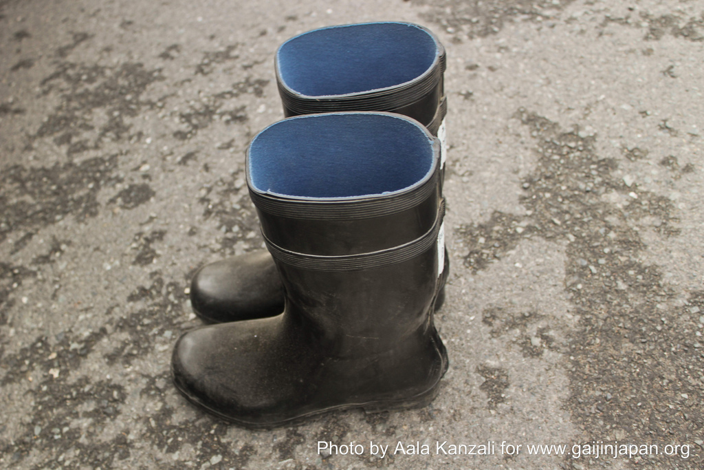 kamaishi, iwate, tohoku, japan - volunteer fro tsunami - boots, bottes
