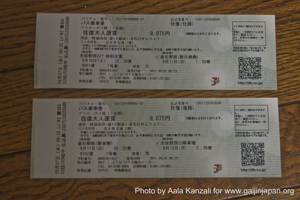 kamaishi, iwate, tohoku, japan - volunteer fro tsunami - bus ticket, ticket de bus