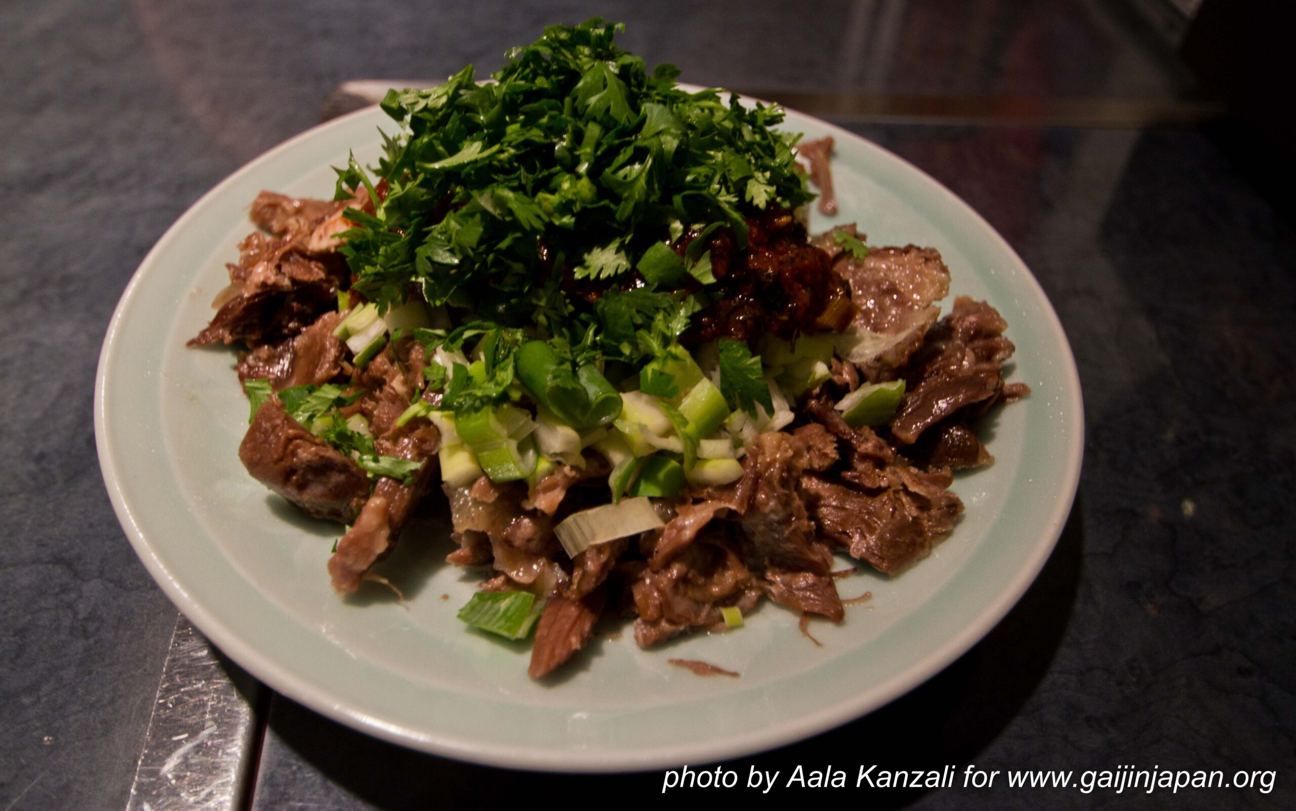 Après être entré dans les lieux, nous nous sommes installés à table et Sean à commandé une assiette basique de viande de chien à 2000 Yen. Pour ma part, je me suis porté sur un plat de fruits de mer. Quand l’assiette de viande nous a été servie, j’avoue que son contenu semblait des plus appétissant. A tel point que cela donnait envie de le dévorer. Je pense d’ailleurs que la majorité des personnes, si ils ne savent pas que c’est de la viande canine, le mangerait sans aucun problème. En tout cas mon ami, ne s’en est pas privé.