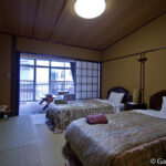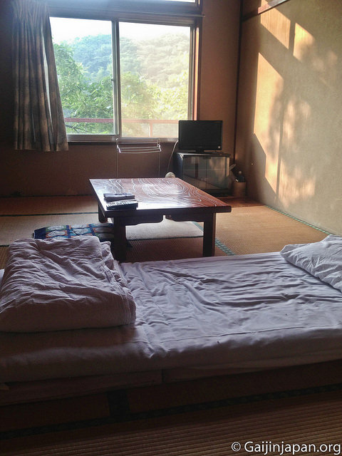 Dans ces auberges traditionnelles, vous y aurez une chambre sans cloison, dont le sol sera entièrement en tatami, à base de paille de riz, et le mobilier sera limité au strict minimum, à savoir une table basse, peut-être une télé dans certains ryokan, et surtout l’élément indispensable: un futon, sur lequel vous dormirez. Toutefois, certains ryokan proposent dorénavant des lits à l’occidental pour répondre aux attentes d’une autre clientèle.