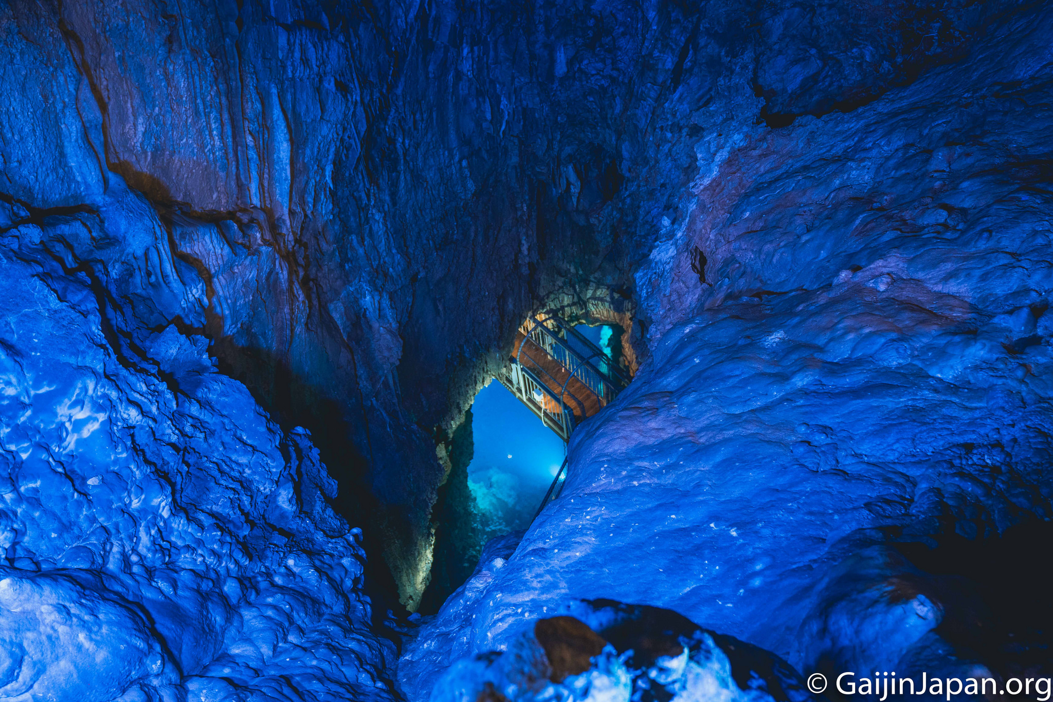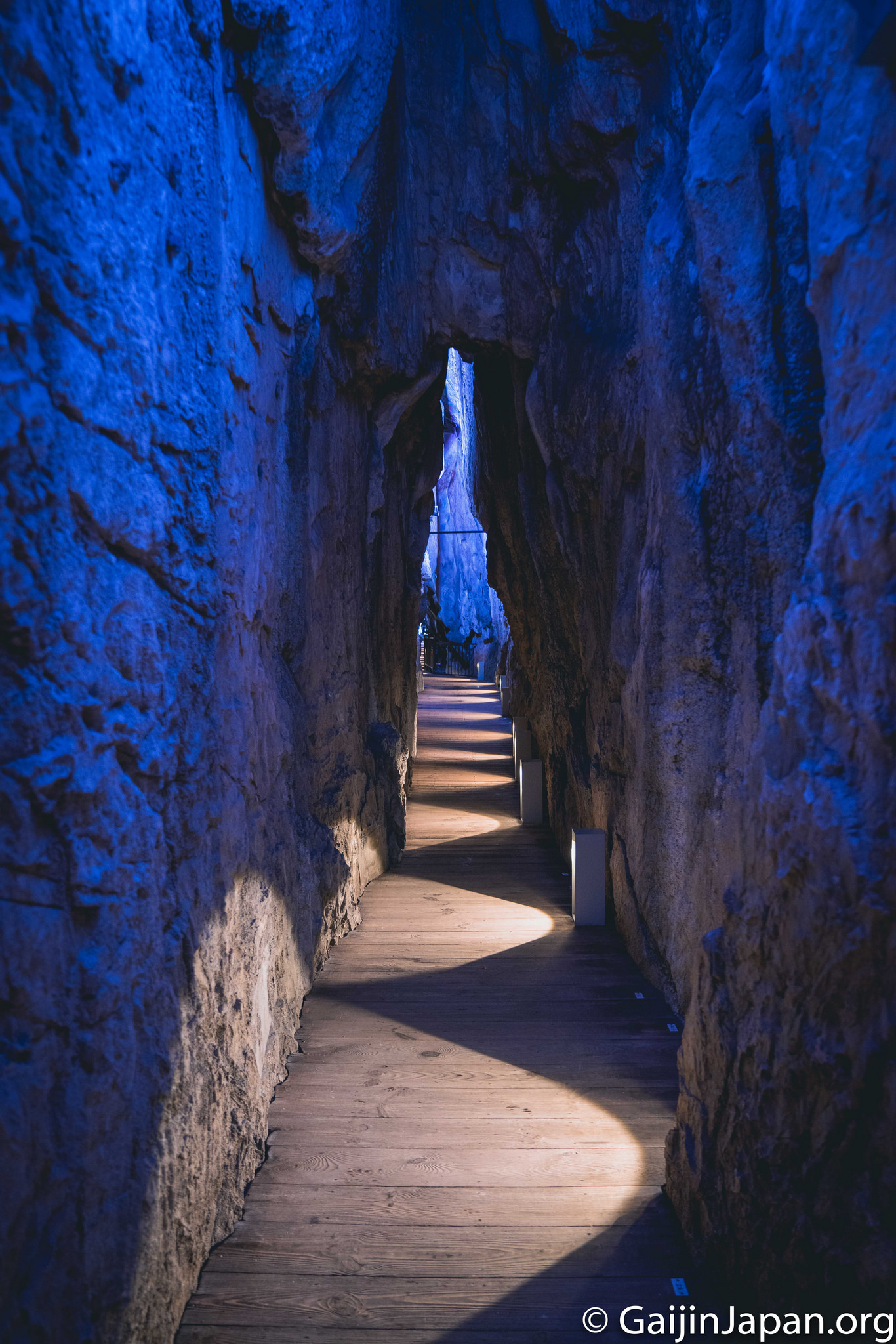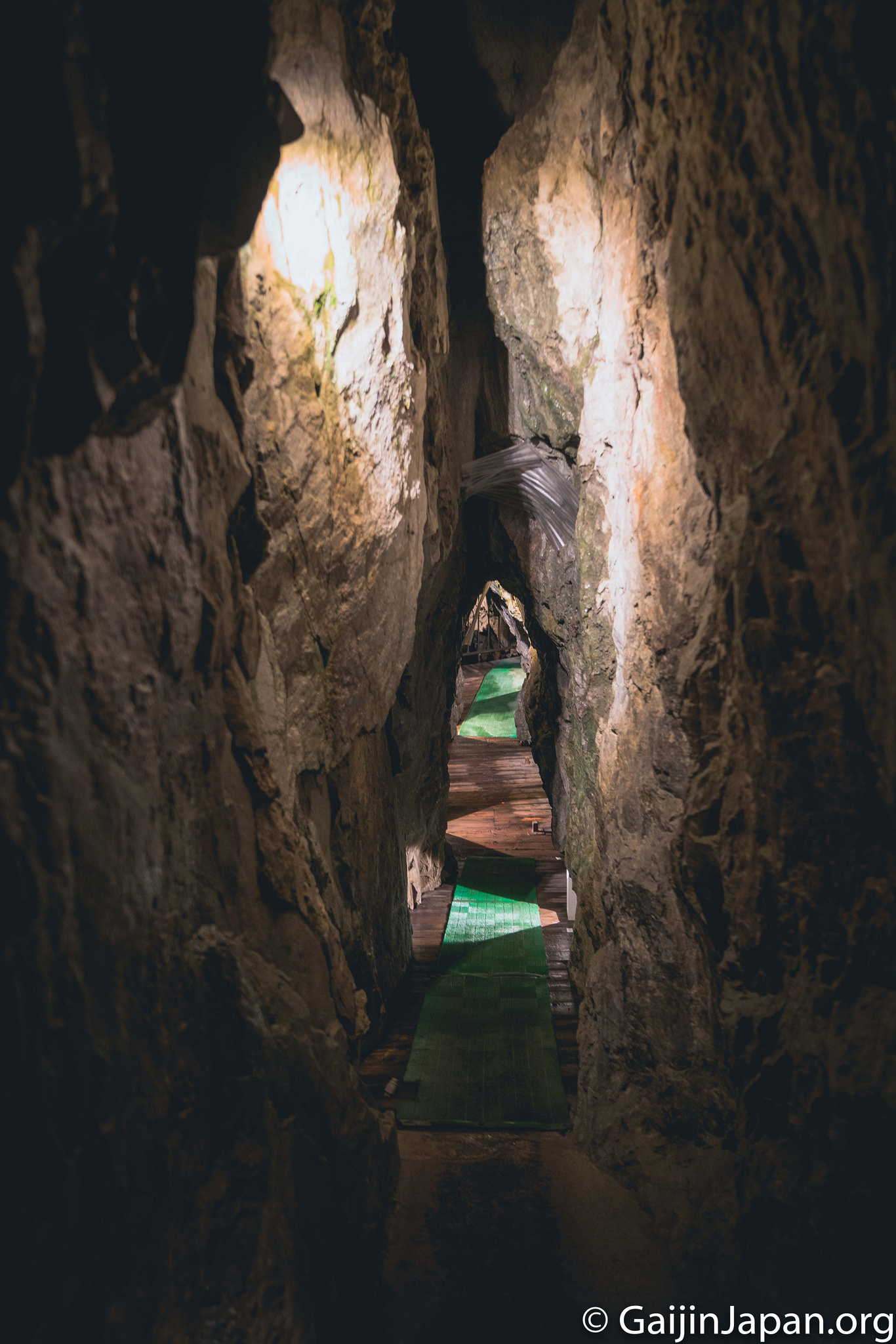 Dès que l’on entre dans la grotte, la température baisse, ce qui peut faire un bien fou face à la chaleur humide de l’été au Japon. On est de suite emporté par le bruit calme et relaxant de l’eau qui coule et on se laisse guider aisément au travers de ce tunnel naturel, sur la voie qui nous est toute tracée.