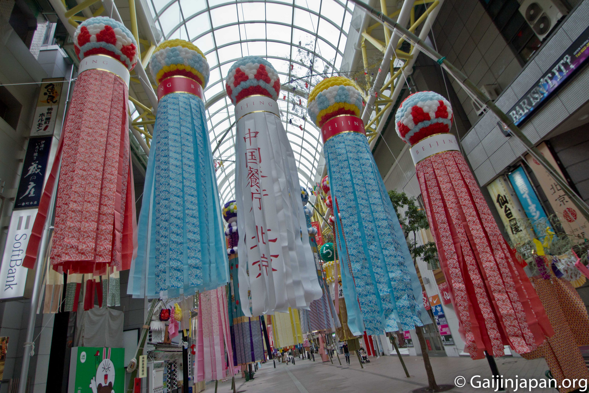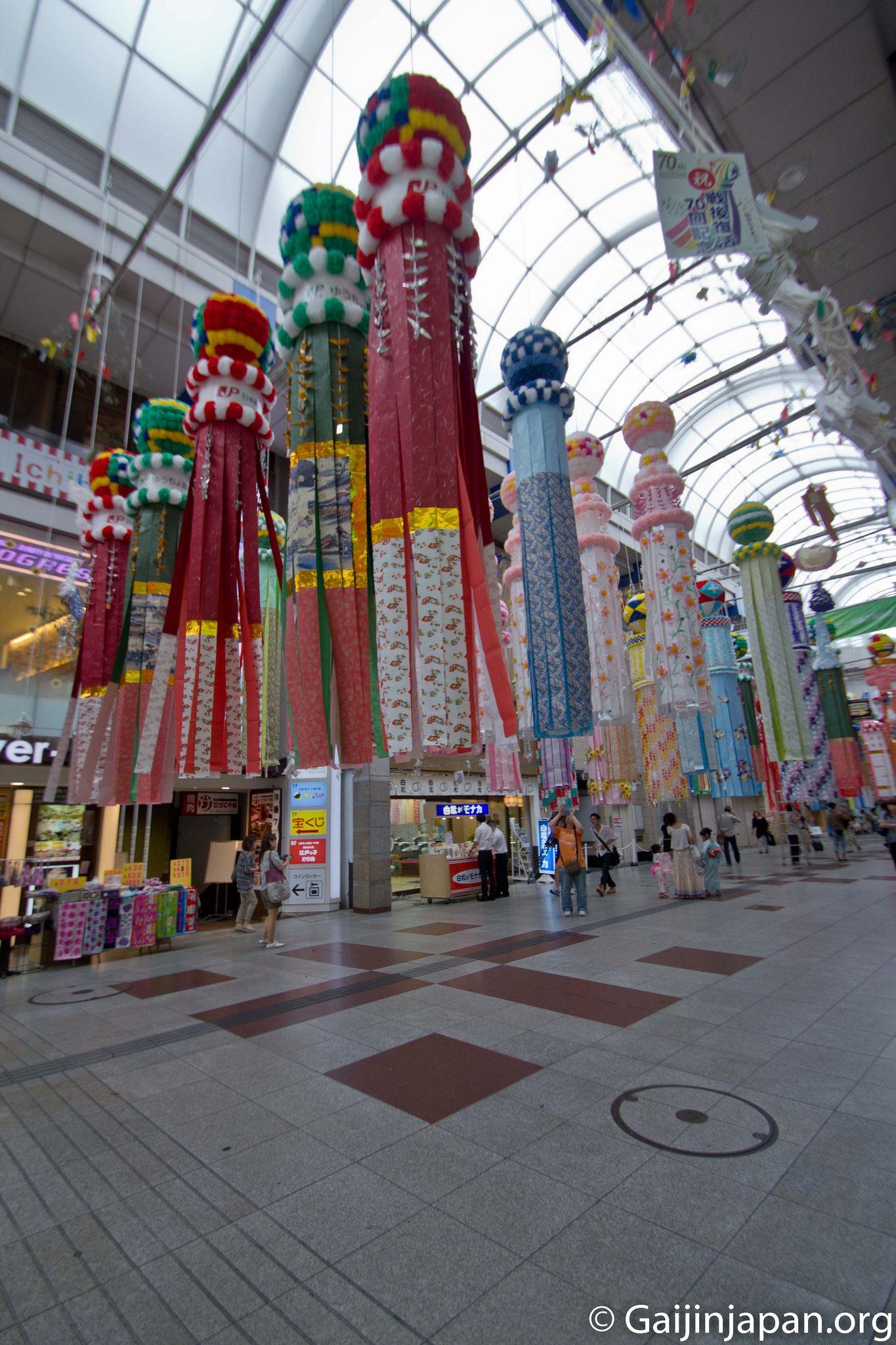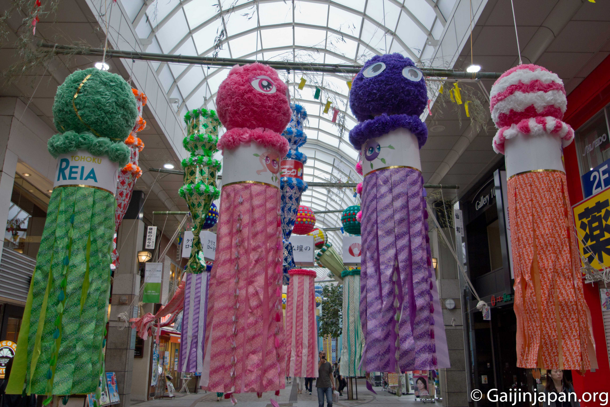 A quelques pas à peine de la station de Sendai, au sein des galeries marchandes couvertes vous pourrez voir, suspendu à des tiges de bambous de 10 mètres de haut, des « banderoles arrondies » d’une hauteur comprise entre trois et cinq mètres, et étant bien colorées. Elles sont tellement grandes qu’on a vite fait de les toucher avec sa tête tout en marchant.