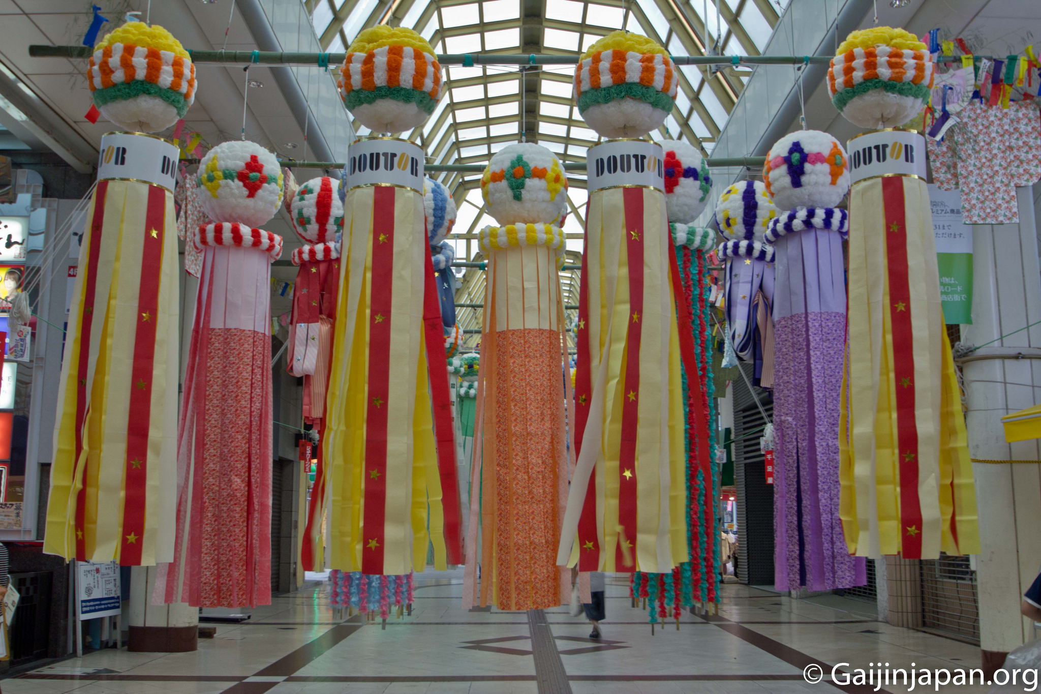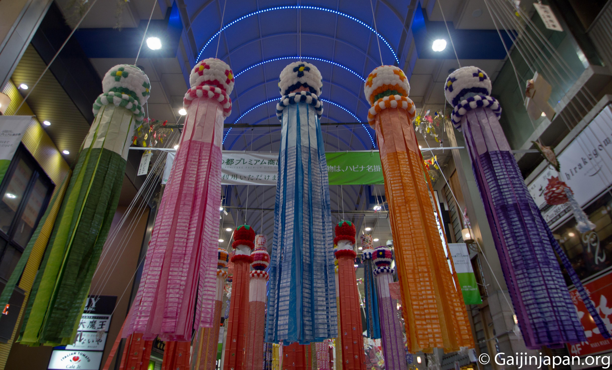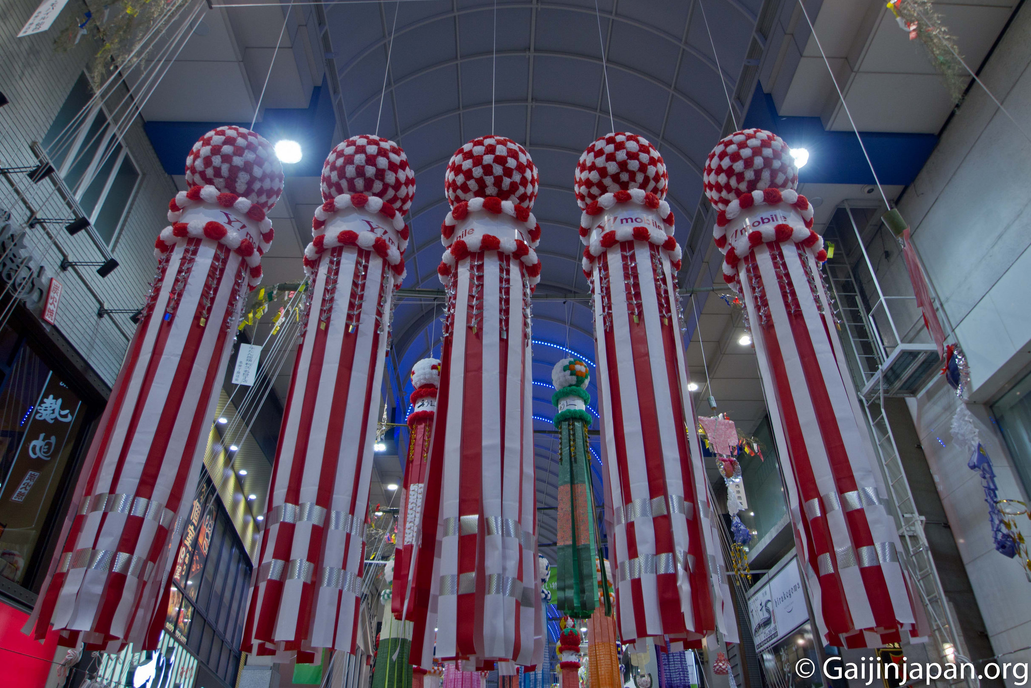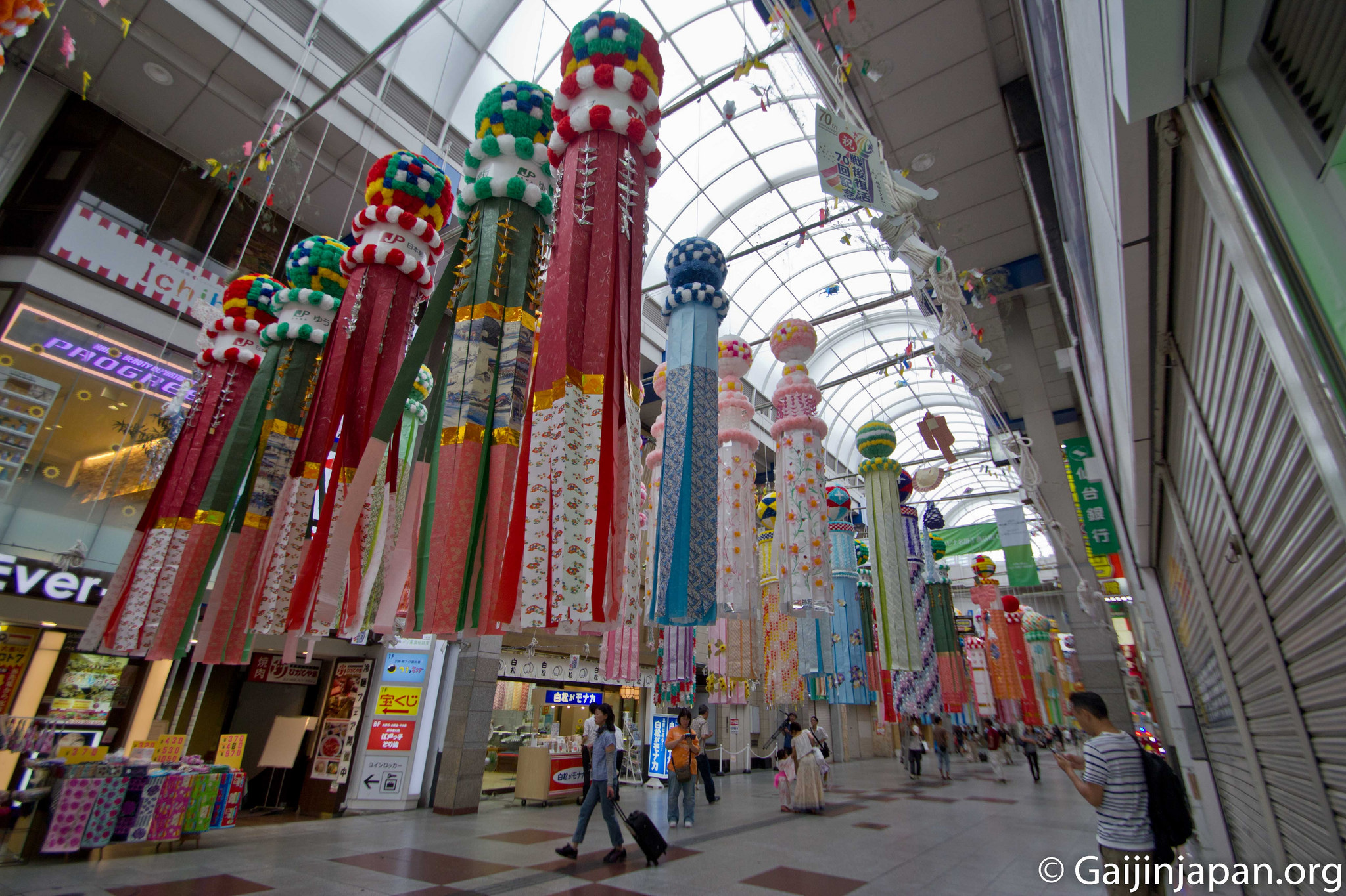 A quelques pas à peine de la station de Sendai, au sein des galeries marchandes couvertes vous pourrez voir, suspendu à des tiges de bambous de 10 mètres de haut, des « banderoles arrondies » d’une hauteur comprise entre trois et cinq mètres, et étant bien colorées. Elles sont tellement grandes qu’on a vite fait de les toucher avec sa tête tout en marchant.