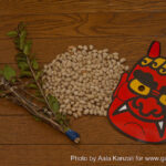 L’autre tradition, lors du Setsubun, et qui est d’ailleurs la plus populaire, consiste à jeter des haricots séchés et grillés. Mais pas à les jeter pour les jeter, non, non. En effet, il faut jeter des Fukumame (福豆- haricots porte-bonheur) en prononçant la formule suivante: « Oni ha soto, Fuku ha uchi » (鬼は外、福は内) qui signifie « Dehors les démons! Dedans le bonheur ». Ceci s’appelle le Mamemaki (豆撒き– lancé de haricots).