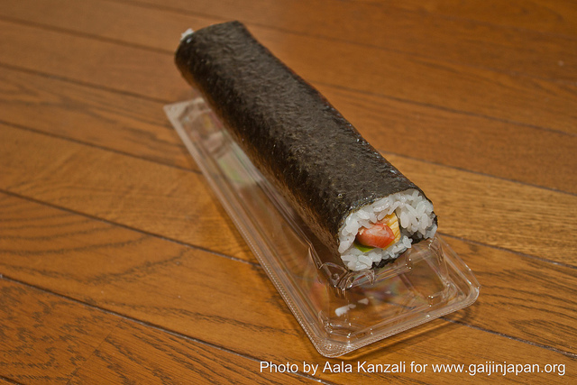Le Ehomaki (恵方巻き) est tout simplement un maki de grande taille, non coupée, qu’il faut manger en une fois, en silence, le soir même de Setsubun. Mais attention, on ne le mange pas n’importe comment non plus. En effet, il vous faudra vous orienter vers la bonne direction pour cela. Celle-ci est déterminée en fonction du signe du zodiaque de l’année en cours. Par exemple, pour 2015 (année du mouton) il s’agira de la direction « Est – Sud-Est » (西南西).