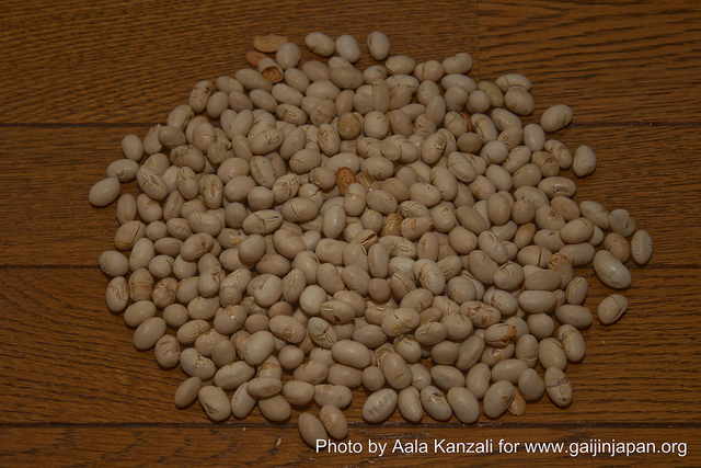 L’autre tradition, lors du Setsubun, et qui est d’ailleurs la plus populaire, consiste à jeter des haricots séchés et grillés. Mais pas à les jeter pour les jeter, non, non. En effet, il faut jeter des Fukumame (福豆- haricots porte-bonheur) en prononçant la formule suivante: « Oni ha soto, Fuku ha uchi » (鬼は外、福は内) qui signifie « Dehors les démons! Dedans le bonheur ». Ceci s’appelle le Mamemaki (豆撒き– lancé de haricots).