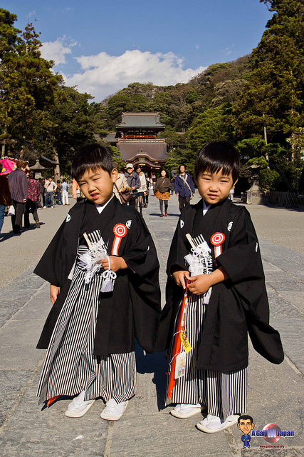 Les garçons célèbrent cet évènement à l’âge de 3 et 5 ans lorsque les filles le font aux âges de 3 et 7 ans. A l’époque des samuraï, les garçons de 3 ans obtenaient le droit de laisser pousser leurs cheveux, et ceci ne se pratique plus maintenant. Aujourd’hui, les filles et garçons de 3 ans porteront, pour la première fois, des habits japonais traditionnels (kimono essentiellement). A 5 ans, les garçons porteront leur tout premier Hakama (kimono masculin). Enfin, à 7 ans, les filles pourront échanger la corde de leur kimono contre le traditionnel obi.