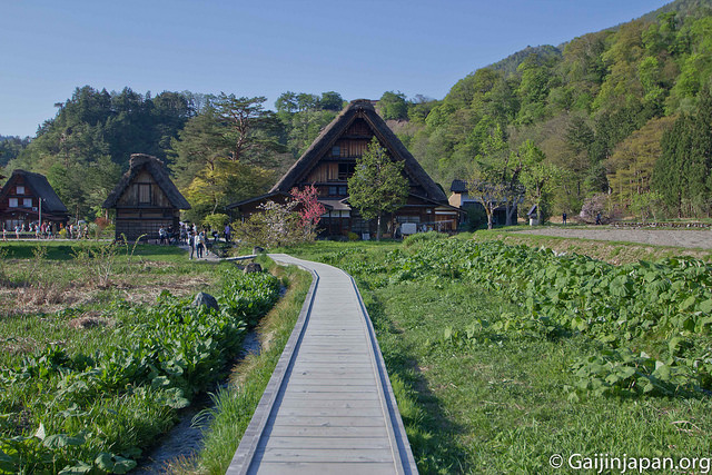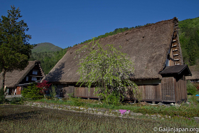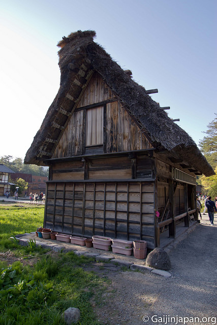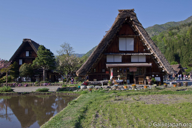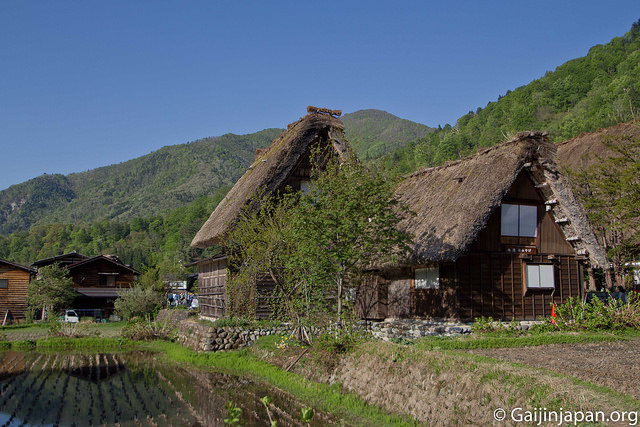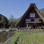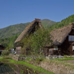 Shirakawa-gō (白川 – le village de la rivière blanche) est un village au Nord de la préfecture de Gifu et est composé d’un hameau qui est Ogimachi, le long de la rivière Sho. Ce qui fait la particularité de ce village reste ses maisons aux toits de chaumes pentu et construit sans clou, dont la fonction première est de pouvoir supporter les fortes tombées de neige qui ont lieu dans la région chaque année. Ces maisons sont appelées Gassho-Zukuri (合掌造り – en forme de mains qui prient) et certaines ont plus de 250 années d’existence, tandis que le village existe depuis le XIème siècle. Elles sont au nombre de 117 auquel il faut ajouté 7 autres structures.