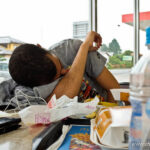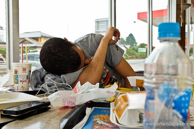 – Le policier en X5 : alors qu’Abdel était resté dans un Mc Do, dans le cadre d’un défi qu’on lui avait lancé, Charles et moi avancions en direction d’Utsunomiya. Jusqu’à ce que nous nous fassions interpeller par un jeune policier. Ce dernier voulait nous offrir des cannettes de boissons énergisantes, avant de repartir du haut de son BWM X5. C’est fou ce qu’on se sent petit et lent comparé à ça.