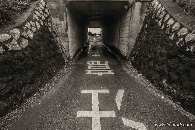 – Le jeune automobiliste perdu : nous sommes arrivés devant le panneau de la préfecture de Fukushima le jeudi soir. Après avoir pris quelques photos, nous nous sommes rendu compte qu’il était impossible de traverser le pont pour des piétons (pas de trottoirs et des poids lourd lancés à toute vitesse). Nous nous sommes donc résignés à faire du stop pour traverser le pont. Et là, allant dans la direction opposée, un jeune homme arrêta sa voiture en plein milieu de la route, brusquement, non sans prendre le risque de créer un accident avec les 2 poids lourd qui le suivait. Il décida de repartir pour faire demi-tour et venir nous récupérer. Lorsqu’il arriva à notre hauteur, il s’arrêta encore une fois violement au milieu de la route, et pris encore le risque de causer un accident. Une fois monté dans sa voiture, il ferma toutes les fenêtres et lança le chauffage à fond (en plein été) ce qui fait que l’ensemble des vitres étaient pleine de buée. Il était impossible de voir, notamment pour le conducteur, mais cela ne semblait pas le déranger, et il a roulé ainsi, pendant qu’on avait peur pour nos vies. Malgré cela, il était vraiment sympa et nous a bien aidés.