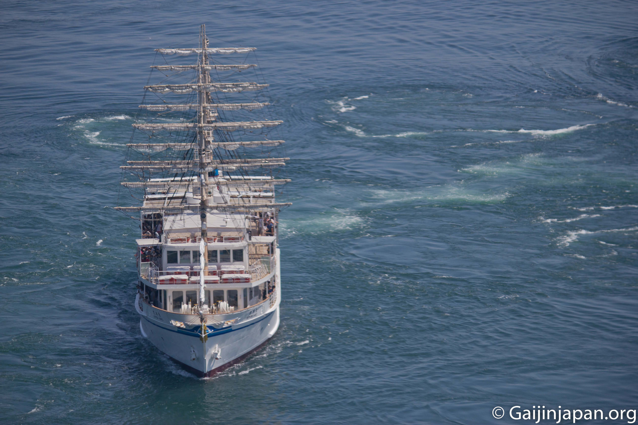 La tourbillon de Naruto, appelé Naruto no Uzushio (鳴門の渦) est un phénomène naturel dû à la rencontre des marées de la mer intérieure de Seto et l’Océan pacifique et aussi du fait de l’étroitesse du détroit qui s’étend sur seulement 1.340 mètres de largeur.