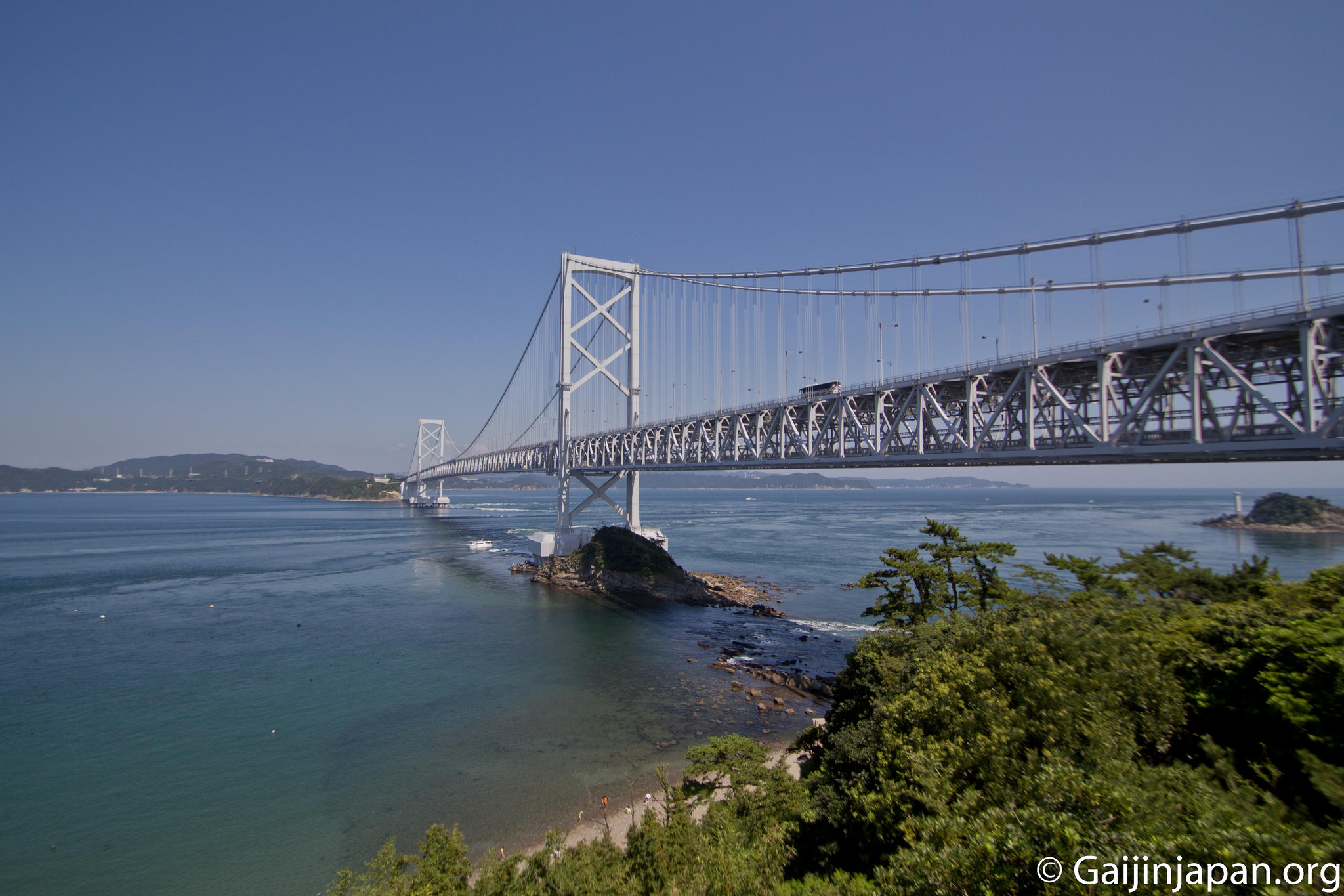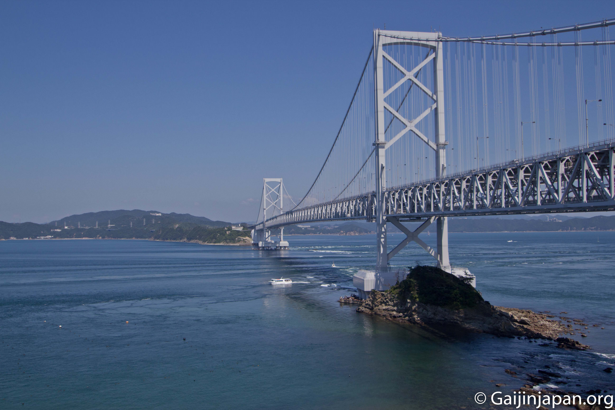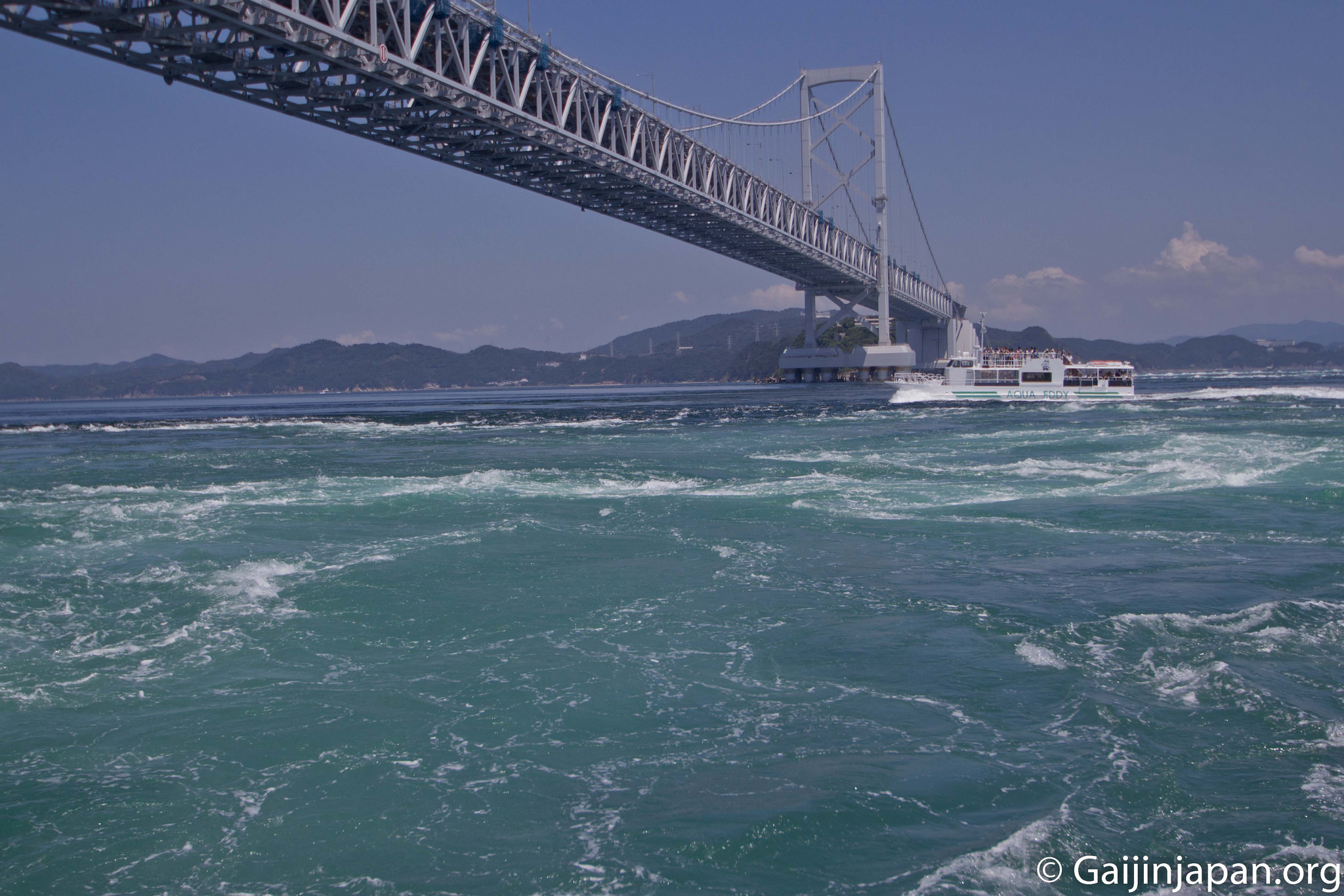 C’est là, entre la pointe de l’île de Shikoku, au niveau de la préfecture de Tokushima, et l’île d’Awaji, de la préfecture de Hyogo (île de Honshu) que se trouve le célèbre détroit de Naruto (Naruto Kaikyo –鳴門海), portant le même nom que le tout aussi célèbre manga. Et si ce détroit est si célèbre ce n’est pas grâce au manga mais bien sûr grâce aux tourbillons qui prennent place tout au long de l’année.