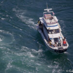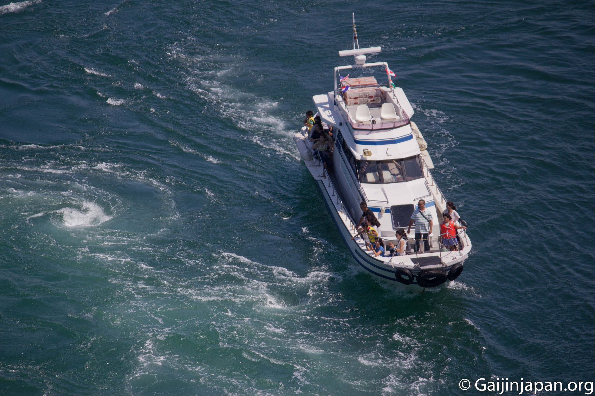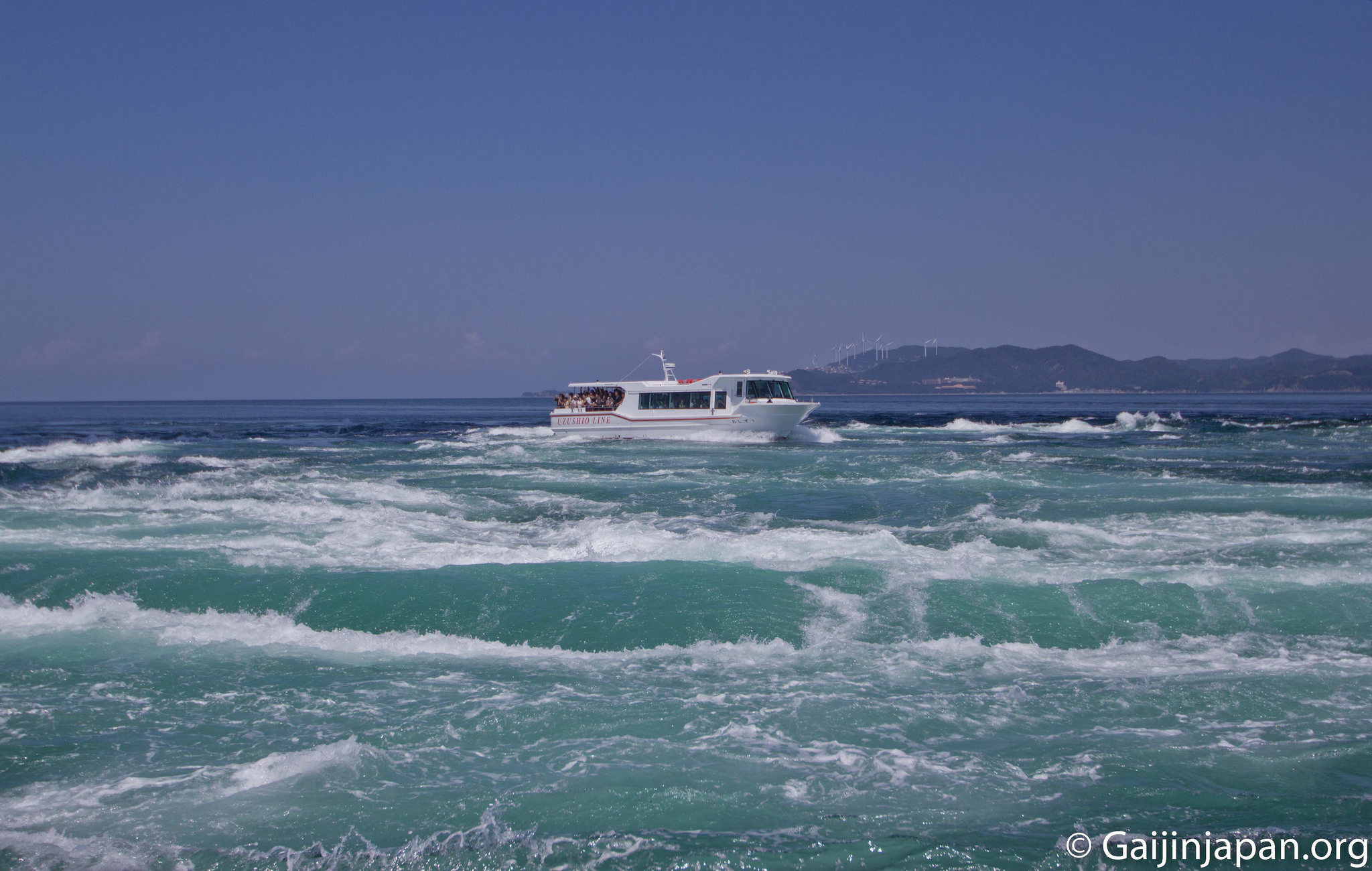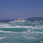 Enfin, autre expérience à votre disposition, le tour en bateau. Depuis le port, situé à quelques encablures du parc Naruto, vous pourrez monter dans l’un des deux bateaux ayant des départs réguliers, pour un tarif d’environ 1.500 Yens par personne. Vous aurez le choix entre le bateau vous offrant une vue « en hauteur » depuis le pont du navire ou celui vous offrant une vue « en profondeur » c’est à dire en intérieur. L’expérience ne donne pas la meilleure des vues sur les tourbillons mais permet d’expérimenter une balade en plein coeur de ces derniers, ce qui a tendance à bien secouer les bateaux.