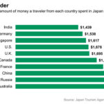 – L’augmentation des visiteurs à « fort budget » venus des pays voisins: les Sud-Coréens, Taïwanais et Chinois, par exemple, ont visités le Japon en masse et avec plus de revenus. L’augmentation des personnes en capacités de voyager issus des pays voisins est un fort facteur de croissance.