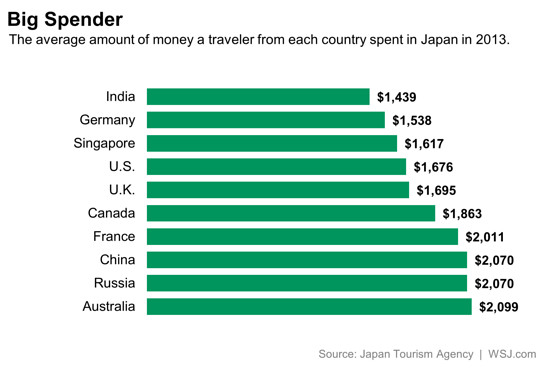 – L’augmentation des visiteurs à « fort budget » venus des pays voisins: les Sud-Coréens, Taïwanais et Chinois, par exemple, ont visités le Japon en masse et avec plus de revenus. L’augmentation des personnes en capacités de voyager issus des pays voisins est un fort facteur de croissance.