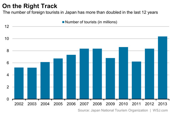 Il faut reconnaître que le tourisme au Japon est un des facteurs chers à M. Shinzo Abe, premier ministre, qui en a fait un de ses piliers de développement de l’économie du pays. Et ceci semble porter ses fruits, puisqu’en avril 2014, la première fois depuis 1970, les touristes étrangers au Japon ont dépensés plus que les touristes japonais à l’étranger (source). A titre de comparaison, la France attire environ 80 Millions de visiteurs sur une année, mais seulement 20 Millions d’entre eux utilisent l’avion pour arriver sur place, et c’est sur ce sujet que le Japon va devoir travailler pour atteindre ses objectifs, car le pays est un archipel dont l’accès le plus simple est l’avion.