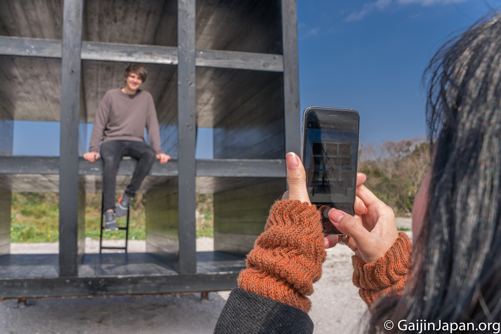 Le lendemain matin j’ai pris le ferry à la découverte de Sakushima, plus grande ile de la préfecture d’Aichi, qui fait 2,5 fois la taille de Tokyo Disneyland et ne compte que 225 habitants. La particularité de cette ile ? Elle accueille des œuvres d’arts libre d’accès et sur lesquelles on peut s’amuser à prendre des photos originales, ce que j’ai bien évidemment fait. La balade sur l’île se fait relativement rapidement et les œuvres d’art offrent un beau cadre pour les photos.