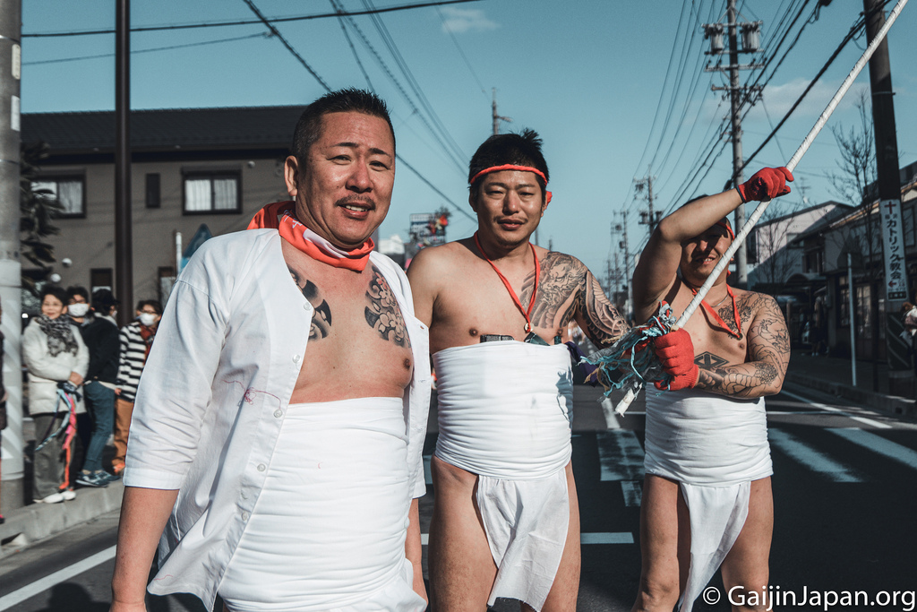 L’après-midi, je me suis rendu dans la ville d’Inazawa pour aller voir (enfin) le Konomiya Hadaka Matsuri, ce célèbre festival où des Japonais (et aussi quelques étrangers) paradent presque nus (en Fundoshi, le caleçon traditionnel) bravant le froid hivernal et recevant, en pleine figure, de l’eau froide lors du rituel. Ce Matsuri est vraiment impressionnant à voir et j’ai adoré cette expérience, l’une de mes préférées de ce trip dans la préfecture d’Aichi.