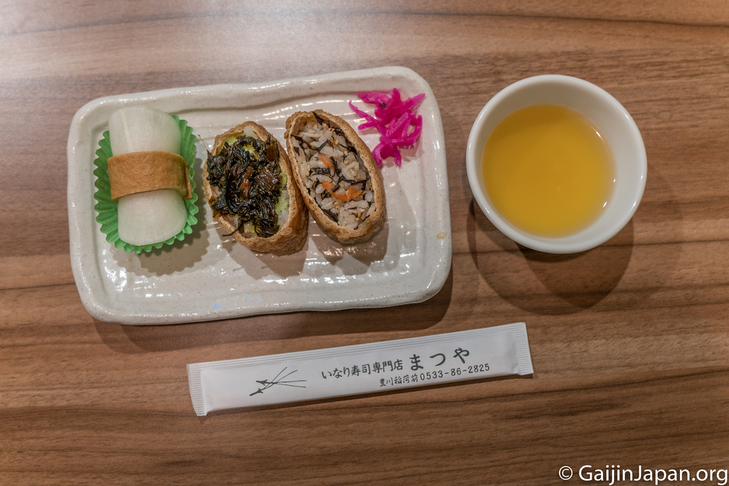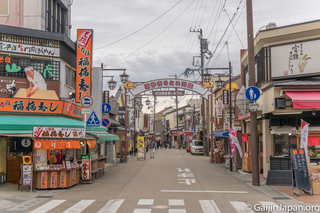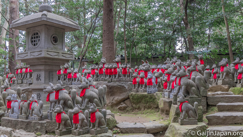 Tout d’abord, j’ai commencé par le Toyokawa Inari Jinja et son millier de statues d’Inari, ce petit renard sacré que l’on voit dans de nombreux lieux de cultes au Japon. Quand je suis arrivé dans le sanctuaire, au début, je me suis dit qu’il ressemblait à beaucoup d’autres, un bâtiment principal et quelques Torii et puis c’est tout. Mais en faites il faut aller à l’arrière du lieu pour y découvrir son plus grand charme que sont ses statues de renards dont la disposition attire l’œil. La balade est calme, apaisante et le lieu relativement peu visité. J’ai aussi profité de ma présence sur place pour aller manger des Inarizushi, spécialité locale vendue dans les magasins en face du sanctuaire.