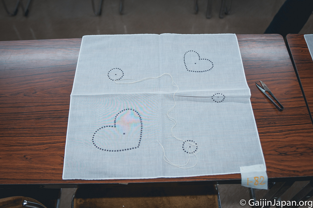 Pour le dernier jour du voyage, j’ai visité Arimatsu, en matinée, une ancienne station de la célèbre route du Tokaido (qui reliait Tokyo à Kyoto à l’ère Edo). Là-bas, outre les maisons d’époque (des Kura, entrepôts) j’ai pu m’essayer à la spécialité locale qui est la teinture Arimatsu Shibori. Ce ne fut pas facile du tout mais tellement intéressant surtout avec la petite dame de 85 ans qui m’a enseigné cette technique.
