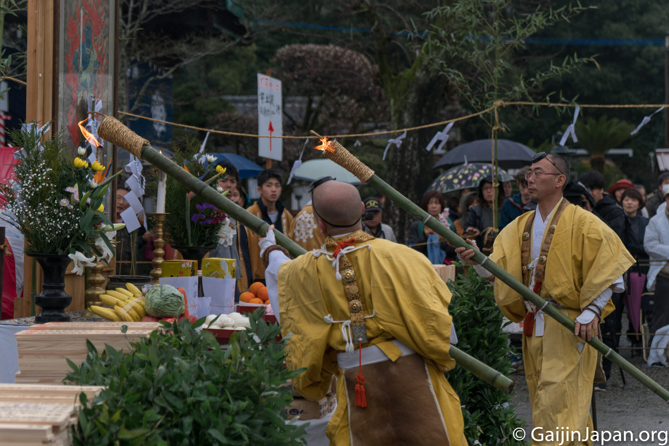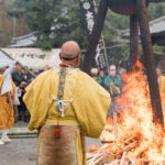 Tôt le matin, direction le temple de Kiharafudoson, méconnu, pour assister au « fire festival » local où les moines vont marcher sur des charbons ardents avant de laisser place au public et ceux qui veulent s’y essayer. Ce fut impressionnant de les voir marcher au travers des flammes et je m’y suis essayé aussi. Bon, il faut reconnaître qu’on n’avait pas à marcher au travers des flammes mais seulement sur les charbons restant et que la température était chaude mais supportable.