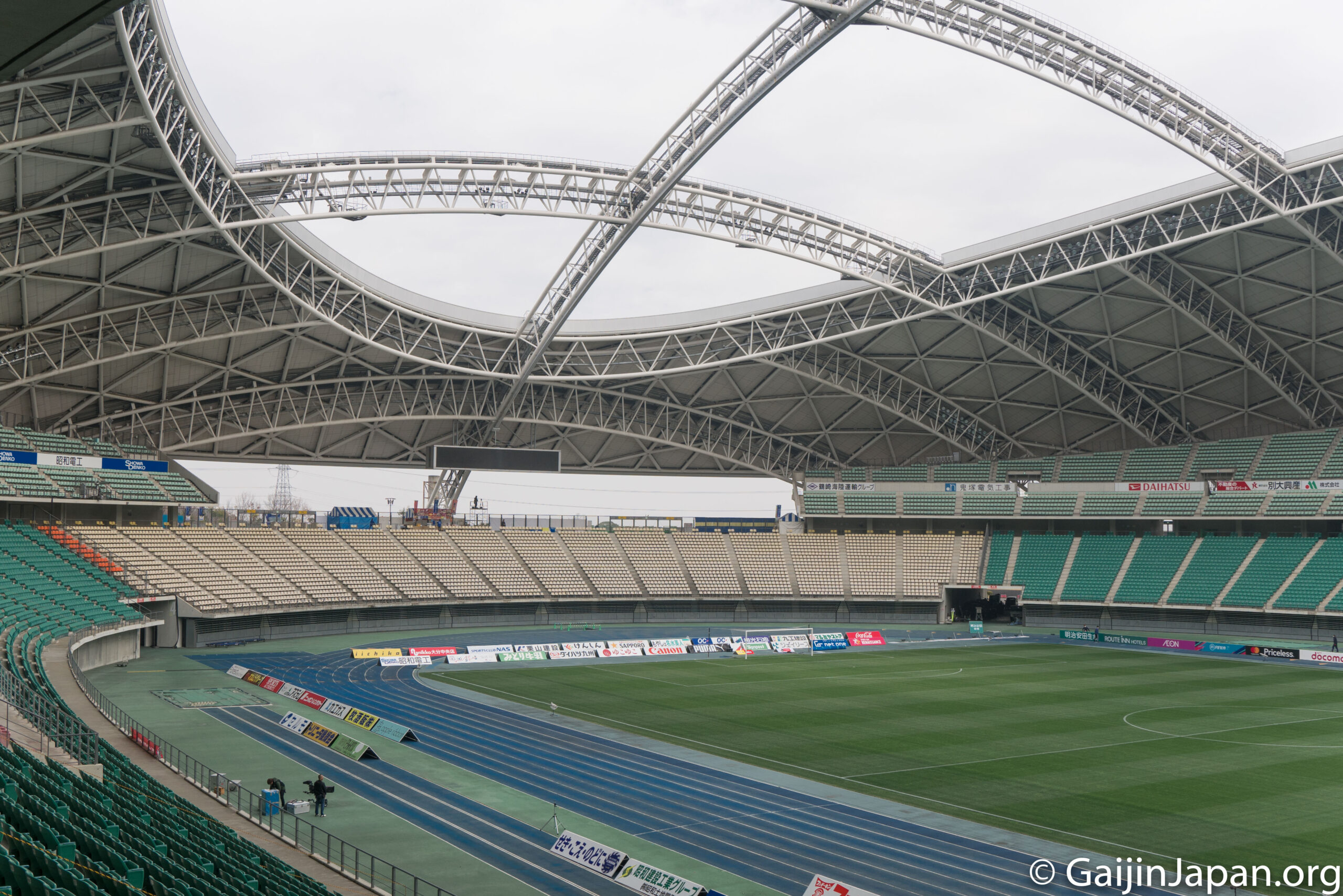Le lendemain, je suis parti à la découverte du stade de Oita, dans la ville du même nom, non loin de Beppu, qui va accueillir des matchs de la coupe du monde de rugby. Le voir de l’intérieur, avec une visite guidée était sympa mais il me tarde de le voir avec l’ambiance de la foule lors de matchs de ce grand événement qui se prépare. Surtout que le stade va accueillir de belles affiches.