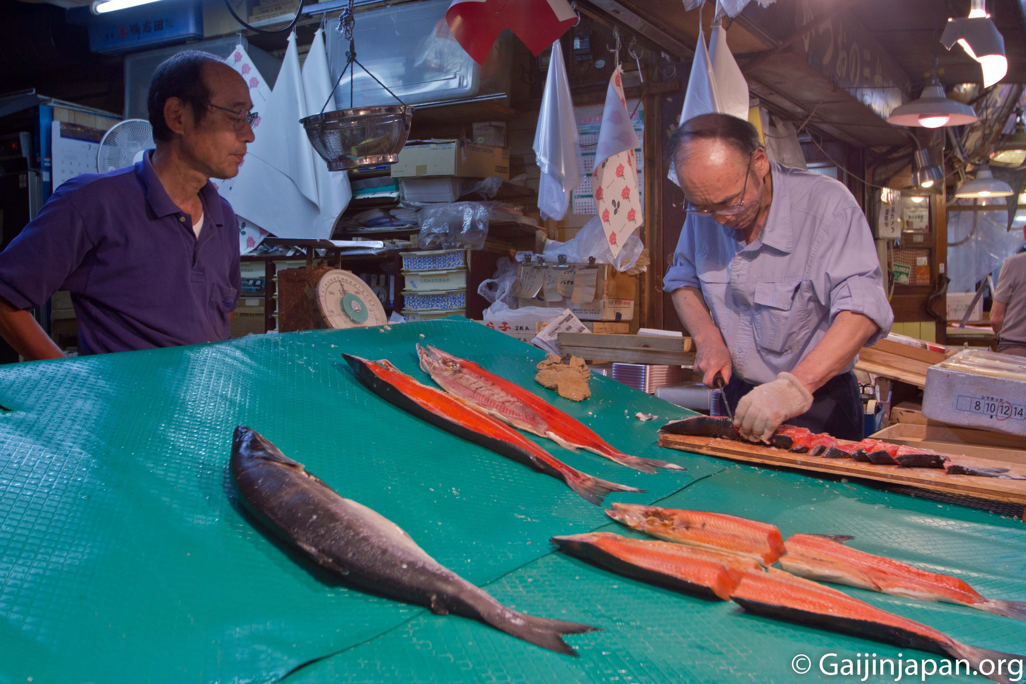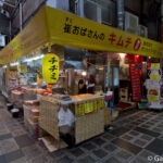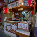 C’est tout autour de la station de Tsuruhashi, sous les rails de trains que se trouve un marché des plus désuet avec un charme unique en son genre. Des étales accolés les uns aux autres avec des éclairages d’une autre époque, ou bien des « restaurants » et autres bouis-bouis dispatchés par ici et par là et qui attirent l’attention du visiteur. Mais surtout ce sont ces mélanges de couleurs, de parfums et de saveurs qui retiennent l’esprit. Un mélange qui nous fait de suite voyager au pays des 1001 saveurs.