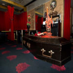 Le décor est bien fait. Un cercueil dès l’entrée de la salle principale vous accueille. La lumière est tamisée à souhait (j’ai dû prendre toutes mes photos avec mon flash) et l’ambiance est d’un calme à ne pas déranger les morts. Mais peut-être que c’est le but recherché après tout. Peut-être ne faut-il pas donner envie à Dracula de venir nous sucer le sang.