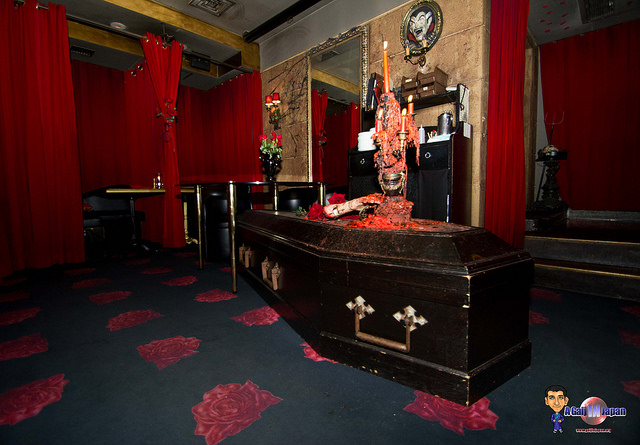Après vous avoir présenté le Christon Cafe à Shinjuku – Tokyo, laissez moi vous présenter un autre café avec une atmosphère des plus gothique : le Vampire Café. Et comme son nom l’indique si bien, vous pourrez y être servit par le comte Dracula en personne (du moins la version japonaise de ce dernier).