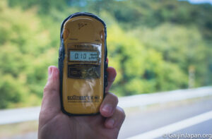 Takuto, qui est en charge du tour, nous annonce qu’il faudra environ 3H30 de trajet pour arriver dans la ville de Namie et il nous montre un compteur Geiger avec le taux de radiation actuel à Tokyo, qui est de 0,12 microsievert par heure, ce qui semble être un chiffre (très) bas. On nous dit aussi qu’en-dessous de 0,40 microsievert par heure la vie est possible sans risque pour la santé. L’objectif sera de comparer les doses de radiation auxquelles ont sera exposés tout au long de la journée avec celle à laquelle on est exposé de manière quotidienne dans une ville comme Tokyo. Parce qu’il ne faut pas oublier que la radioactivité est invisible et présente au quotidien.