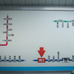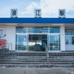 On arrive à la station de trains de Namie. Le niveau de radiation est de 0,24 microsievert par heure. En entrant dans la station, qui elle aussi semble déserte, on voit le panneau montrant les lignes de trains qui passent par ici et on constate, sur le plan, qu’il n’y a aucune desserte entre les villes de Okuma et Futaba car la radiation y est trop forte.