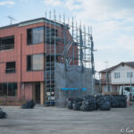 On est entré dans la ville de Namie, préfecture de Fukushima. Il est 10H30 passé, le niveau de radiation semble raisonnable, de toute façon on ne peut pas la voir à l’œil nu et on ne peut que faire confiance aux compteurs Geiger entre nos mains. On voit que des voitures sont garées sur le côté des maisons. Il y a donc de la vie ici. Sur la droite il y a quelques bâtiments temporaires où les locaux peuvent venir faire mesurer leur niveau d’exposition à la radioactivité