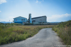 Ensuite, on part marcher quelques centaines de mètres et on arrive devant l’école primaire de Ukedo. Elle se situe à seulement 200 mètres du bord de mer et a même pas 6 km de la centrale nucléaire. Aujourd’hui elle n’est plus en activité même si le compteur Geiger indique 0,11 microsievert par heure dans les environs. Elle est restée dans le même état qu’après le passage du Tsunami.