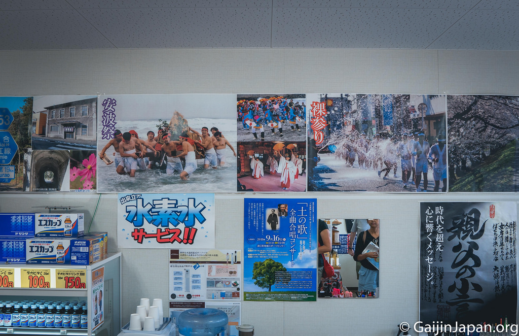 C’est en entrant dans le deuxième magasin de souvenirs que j’ai compris à quel point la vie des locaux allait changer à jamais. Dans cette boutique il y a des photos de Matsuri (festival japonais) au mur. Ce Matsuri a une procession de Mikoshi en pleine mer. Sauf qu’aujourd’hui la mer est contaminée et risque de l’être pour de longues années encore car elle est proche de la centrale nucléaire Fukushima Daiichi. Ce Matsuri avait une longue existence et il ne pourra pas reprendre sa forme initiale. Etant donné l’âge des habitants aujourd’hui, il y a une forte probabilité qque ces derniers ne disparaissentt avant la radioactivité dans la mer environnante et donc avant la reprise de ce Matsuri. Et dans ce cas-là, il se peut que personne ne puisse passer aux prochaines générations les rituels de ce Matsuri ancien. Il disparaitra ainsi dans le temps, sans que personne ne s’en rende compte, dans le plus grand des silences. Il n’en restera que des photos !