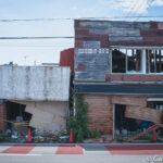 On marche dans une des avenues principales de la ville de Tomioka. Là les boutiques fermées sont légions. On y voit des produits datant de 2011 en vitrine ou à l’intérieur. Nakayama-san nous apprend que les pilleurs ont tentés, depuis le drame et aujourd’hui encore, de voler le contenu de plusieurs magasins à Tomioka mais aussi dans les autres villes touchées par la catastrophe nucléaire. Pour lutter contre cela, la police japonaise envoi des patrouilles de plusieurs villes différentes, à tour de rôle, pour une semaine, sur la base du volontariat. Lors de notre « visite » de Tomioka c’est une patrouille de la ville de Nara, avec leur voiture, qui veille au calme de la citée.