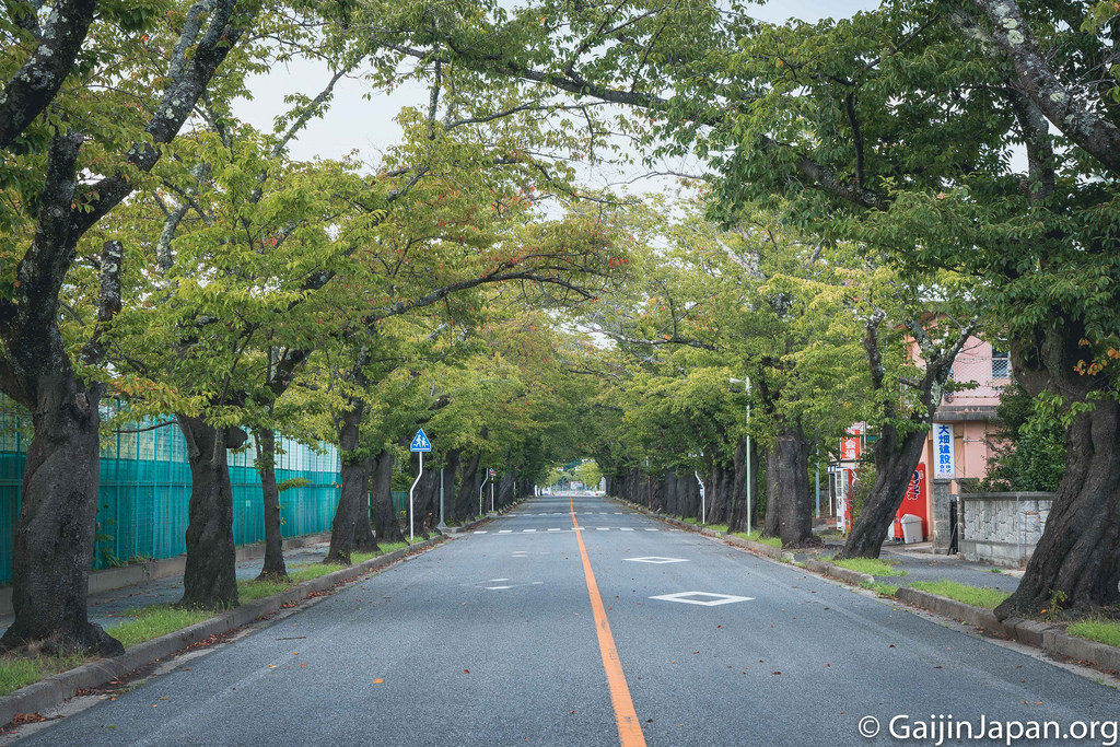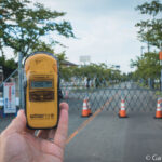 On termine ce tour en marchant le long des 20% de la Sakura-dori, la rue des cerisiers en fleur, ouverte, les 80% restant n’étant pas encore décontaminés. En cette année 2018, pour la première fois depuis la catastrophe, les locaux ont pu célébrer le Hanami le long de cette route, même si lors de la décontamination une bonne partie des branches des cerisiers a été coupée. Lorsque l’on arrive au bout des 20% de la route on voit des barrières qui empêchent à quiconque veut passer d’aller plus loin. Derrière ces dernières se trouve la zone interdite, celle qui est encore contaminée et le compteur Geiger nous le fait comprendre. Il ne cesse de bipper ! On y voit des habitations, un grand magasin de bricolage avec tous ses produits à l’intérieur, des voitures sur le parking, …. Un peu comme si la vie s’était figée le 11 mars 2011 et qu’elle n’attendait que de pouvoir reprendre son cours, ce qui ne sera pas le cas. La poussière et les hautes herbes ont bien pris possession des lieux, tout comme la radiation, mais elle, on ne la voit pas.