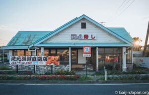 On finit par retourner au niveau du supermarché pour laisser Nakayama-san retourner à sa vie d’habitante de Tomioka. Alors qu’on va « ravitailler » au supermarché avant de reprendre la route pour rentrer à Tokyo, Fumito-san me montre un restaurant de sushi qui s’appelle « Atome Sushi » et m’explique qu’avant la catastrophe il était courant de voir des « businesses » avoir des noms faisant référence au nucléaire puisque la centrale est à proximité. Aujourd’hui c’est un peu comme un mauvais clin d’œil du destin, un vestige d’une époque où les locaux pouvaient être fier de leur centrale.