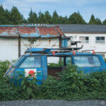 Nous roulons sur la route Numéro 6, la seule pour Okuma et Futaba. Le gouvernement japonais recommande d’emprunter cette route le plus rapidement possible, sans s’arrêter et surtout sans sortir de son véhicule. Marcher dans les environs, faire du vélo ou circuler en moto est formellement interdit.