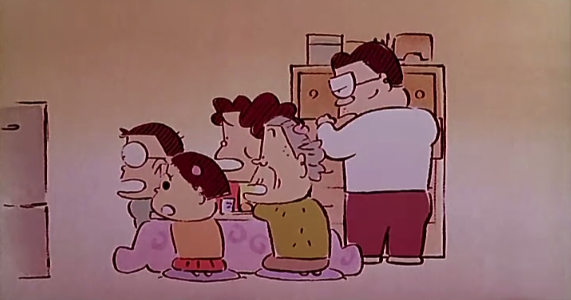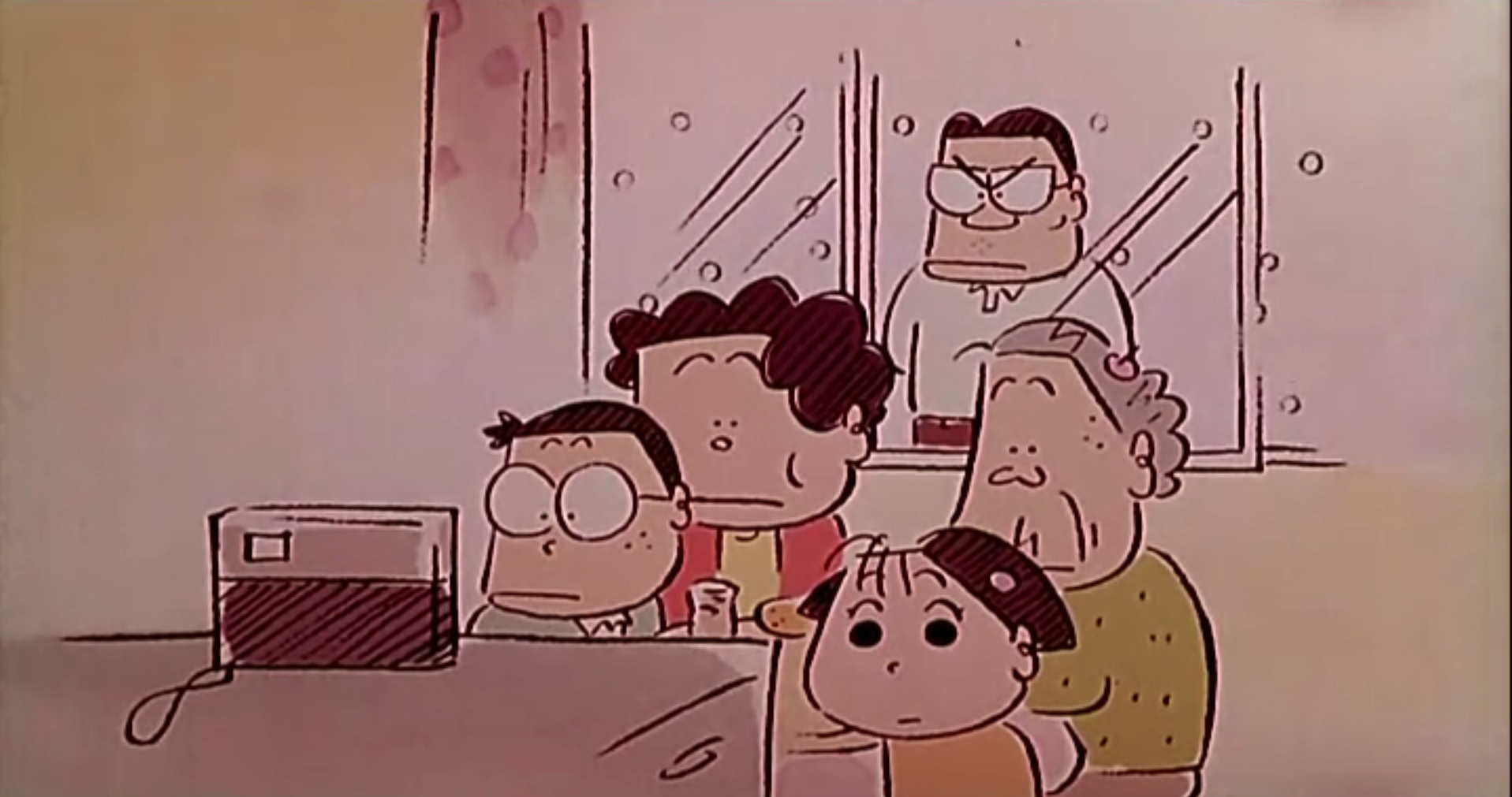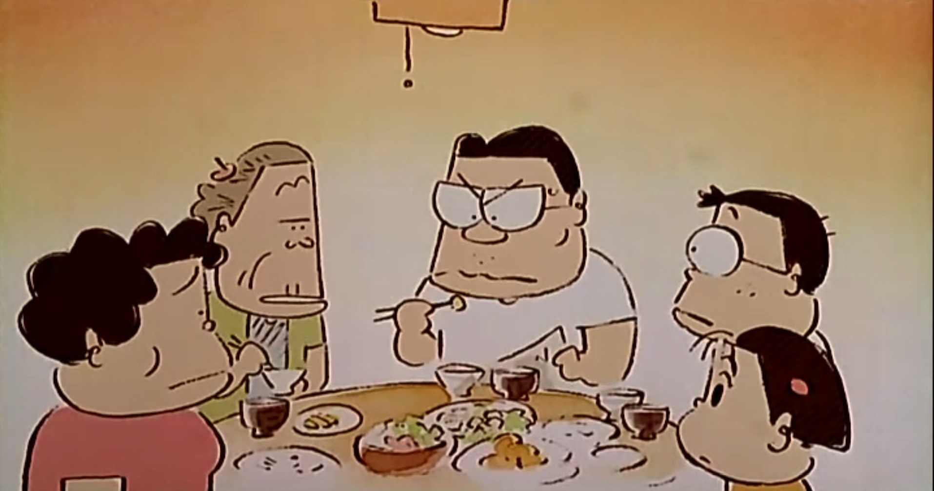 Le réalisateur a tenu à nous montrer le quotidien d’une famille japonaise tout ce qu’il y a de plus banale. A travers des scénettes de la vie courante, chacun des personnages est caricaturé et cela donne naissance à des situations parfois tristes, parfois hilarantes. De ce fait, les Japonais peuvent s’identifier très facilement à cette mise en scène mais, pour les occidentaux, la différence de mœurs se ressent et il sera plus difficile de se mettre à la place des protagonistes. Par exemple, chez nous, il est plutôt rare de voir trois générations cohabiter sous le même toit. De même, les rôles spécifiques de la société japonaise sont utilisés. Matsuko est une mère au foyer, à ce titre, elle devrait s’occuper du ménage, du bien être de sa famille et de la nourriture mais, en réalité, on s’aperçoit très vite qu’elle sature et qu’elle se laisse dépasser par les événements. Takashi est un salaryman que l’on peut traduire par « employé de bureau », il fait beaucoup d’heures et passe énormément de temps en travail sans compter les sorties au restaurant pour boire et « décompresser » appelées nomikai, celles-ci sont obligatoires. Et finalement, Noboru doit surmonter ses difficultés à l’école, sans doute dues à l’énorme pression du système scolaire japonais. Mais attention, bien que tout cela soit éloigné de notre vision de la vie en général, le film reprend énormément d’aspects qui permettront aux européens de s’identifier. Les tracas de la vie quotidienne sont similaires et, même si ce ne sont pas exactement les même, aucun doute que vous deviendrez nostalgique lors de certaines histoires ou que vous rirez en vous rappelant d’une anecdote proche de celle que vous visualisez à l’écran. Takahata nous montre que la famille est un rassemblement d’individus aux potentiels différents, ce qui permet d’avoir des points de vue et des compétences variées afin de réussir à traverser les événements que nous apporte la vie. Grâce à ce film, vous verrez toutes les épreuves que doit traverser une famille japonaise, cela vous permettra d’avoir une nouvelle vision sur ce peuple et son mode de vie. De plus, la morale de la fin de l’histoire est pleine de bon sens : il faut savoir accepter les erreurs de l’autre afin d’avancer dans la vie et accéder au bonheur.
