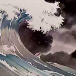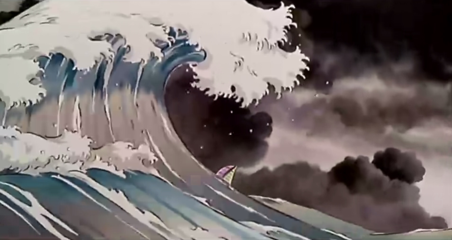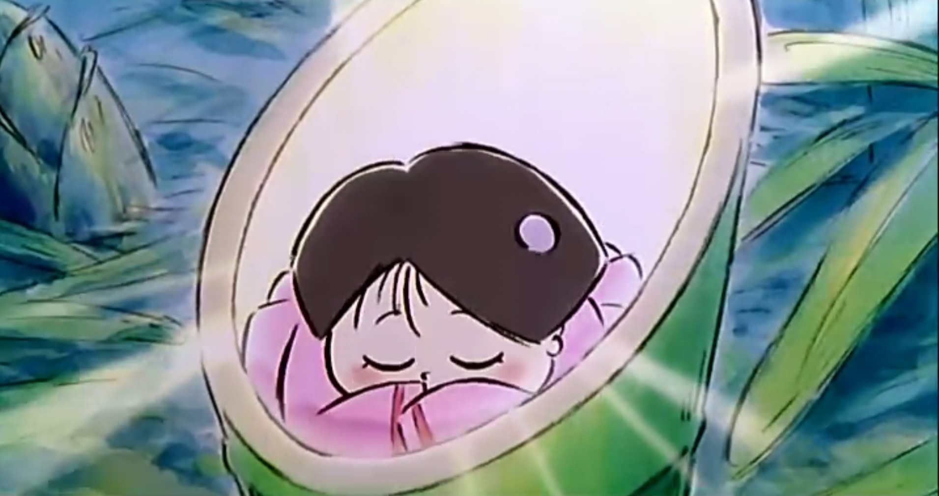 Takahata a introduit quelques références aux folklores japonais tout au long de son film, comme Miyazaki dans le Voyage de Chihiro. Au début de l’aventure, on retrouve les deux jeunes mariés au creux de la célèbre vague d’Hokusai présenté dans les 36 vues du Mont Fuji. Il s’agit d’une œuvre majeure et cette représentation est connue de tous. Mais ce n’est pas tout, deux autres contes ont le droit à un clin d’œil lors de la naissance des enfants de la famille. En premier, on s’aperçoit que comme dans la légende de Momotarô, Noboru est sorti d’une pêche géante qui dérivait sur une rivière. En second, Nonoko a été trouvée à l’intérieur d’un bambou, à ce moment, le réalisateur évoque la princesse Kaguya. Plus tard, Isao Takahata transcrira cette légende en un film particulièrement réussi nommé « Le Conte de la princesse Kaguya » qui proposera, à l’instar de Mes voisins les Yamada, un renouveau graphique par rapport aux traditionnels films d’animation.