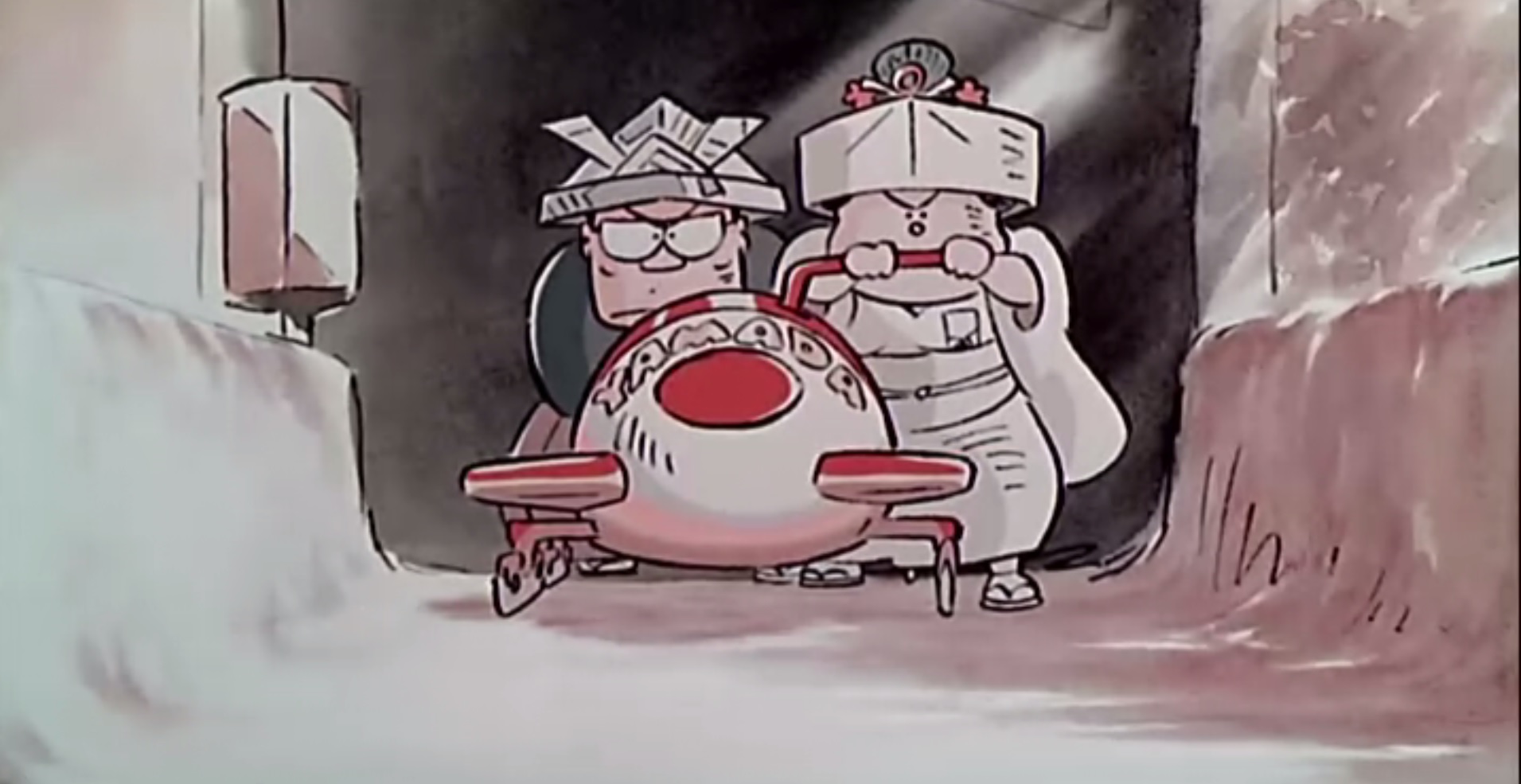 En me renseignant sur ce film, j’ai effectué plusieurs lectures à droite et à gauche et certains avis différent avec ma conception de l’histoire. Particulièrement la partie concernant le mariage des parents. Il s’agit du moment où l’on voit Matsuko et Takashi commencer leur vie sur un bobsleigh, un bateau, puis une barque et finalement un escargot. Certains pensent que le moyen de locomotion est de plus en plus ridicule et lent, qu’il s’agit du temps qui passe, la vie devenant de moins en moins intéressante. A l’inverse, je pense qu’il est préférable de voir la situation autrement. Au départ, la vie défile à toute vitesse, on se rencontre, on se marie, les années passent et on ne se rend compte de rien. Puis, petit à petit, la famille se créée, les enfants apparaissent et à ce moment-là, on sent que l’on peut ralentir, se poser calmement et profiter de la vie, ce qui expliqueraient les moyens de locomotions différents. Et vous, de quelle manière l’avez-vous ressenti ?