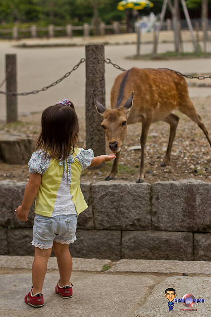 Depuis la station de Nara, il vous suffira de marcher en remontant la rue commerçante jusqu’à atteindre le parc où se trouvent des dizaines et des dizaines de cerfs en liberté et qui sont habitués à l’Homme. Vous pourrez les caresser et même les nourrir. Vos enfants devraient apprécier.