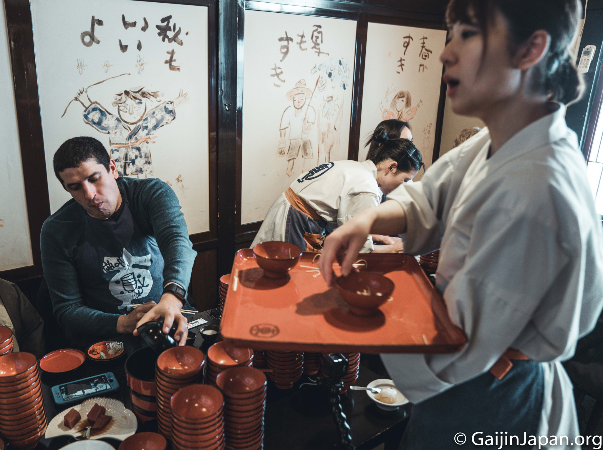 Les règles sont extrêmement simples et le repas est véritablement amusant. Lorsque vous faites un Wanko Soba Challenge dans un restaurant, la serveuse va se tenir debout à côté de vous avec un plateau plein de petits bols de Soba et elle va vous servir les accompagnements et poser un bol vide devant vous ainsi qu’un autre récipient vide. Voici ce qu’il vous faudra faire :
