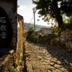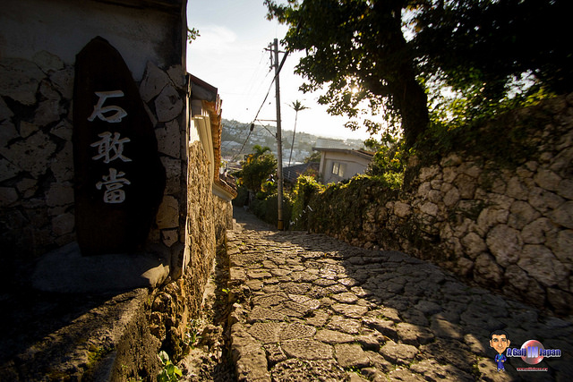 J’ai aussi vagabondé dans les petites ruelles piétonnes de Shuri Kino Cho Ishidatami Michi. De superbes petites ruelles toutes en pierres depuis lesquelles on a une superbe vue sur les toits de la ville de Naha. Au coucher de soleil ce fût vraiment magnifique à voir, avec la mer au loin.