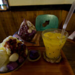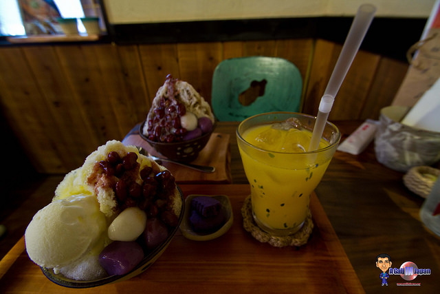 Et parmi tout ce que j’ai mangé, je retiendrais les Umi Budo (raisin de la mer) qui sont une algues avec des boules, les Beni Imo (patate douce violette), les Zenzai (glace pilée avec des haricots, une sauce et un nappage), Sata Andagy (sorte de beignet, dont le nom signifie sucre frit) et les glaces au sel, parfum piment rouge (une glace salée sur laquelle on peut ajouter une poudre parfumée au choix). Un véritable régal tout ça.