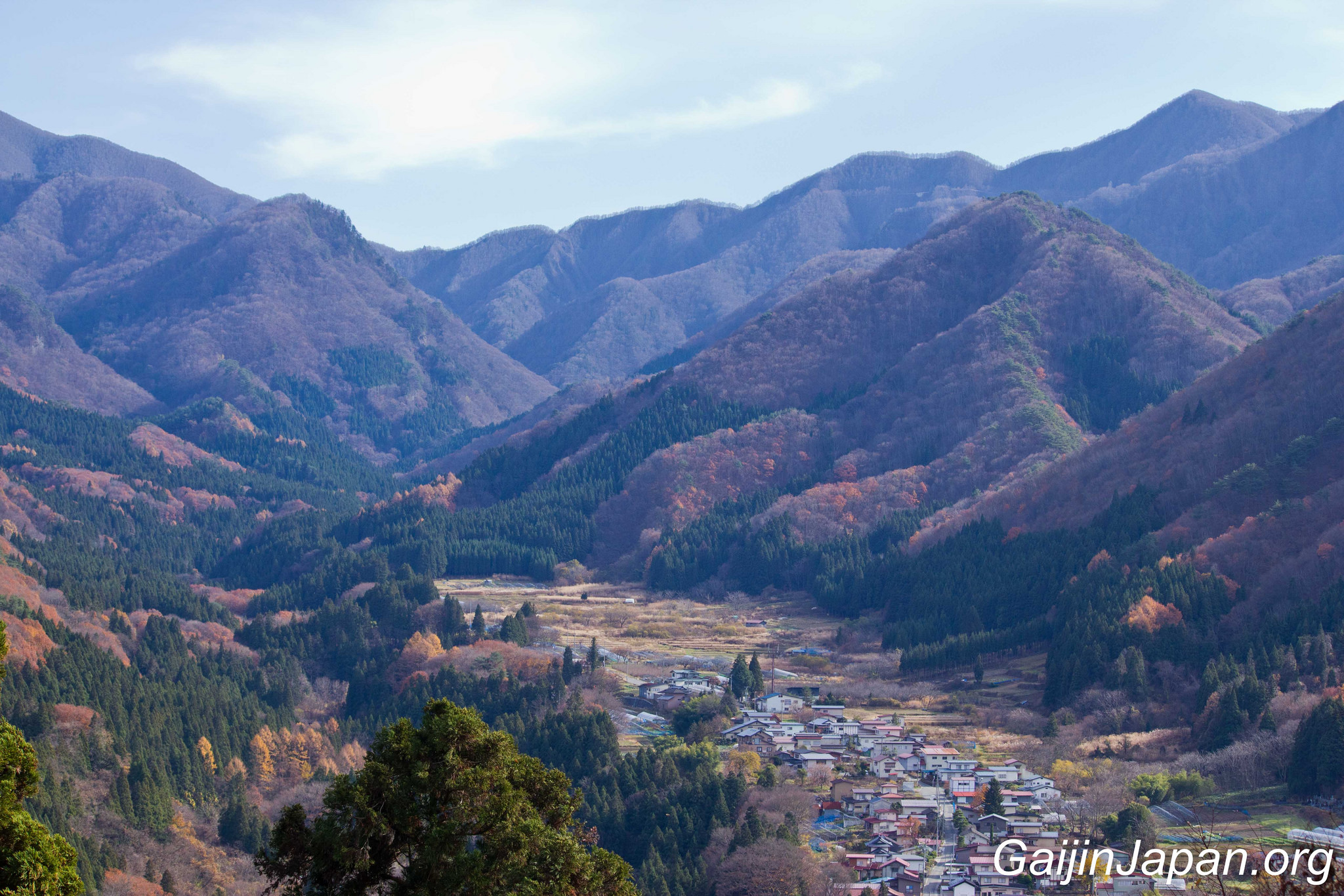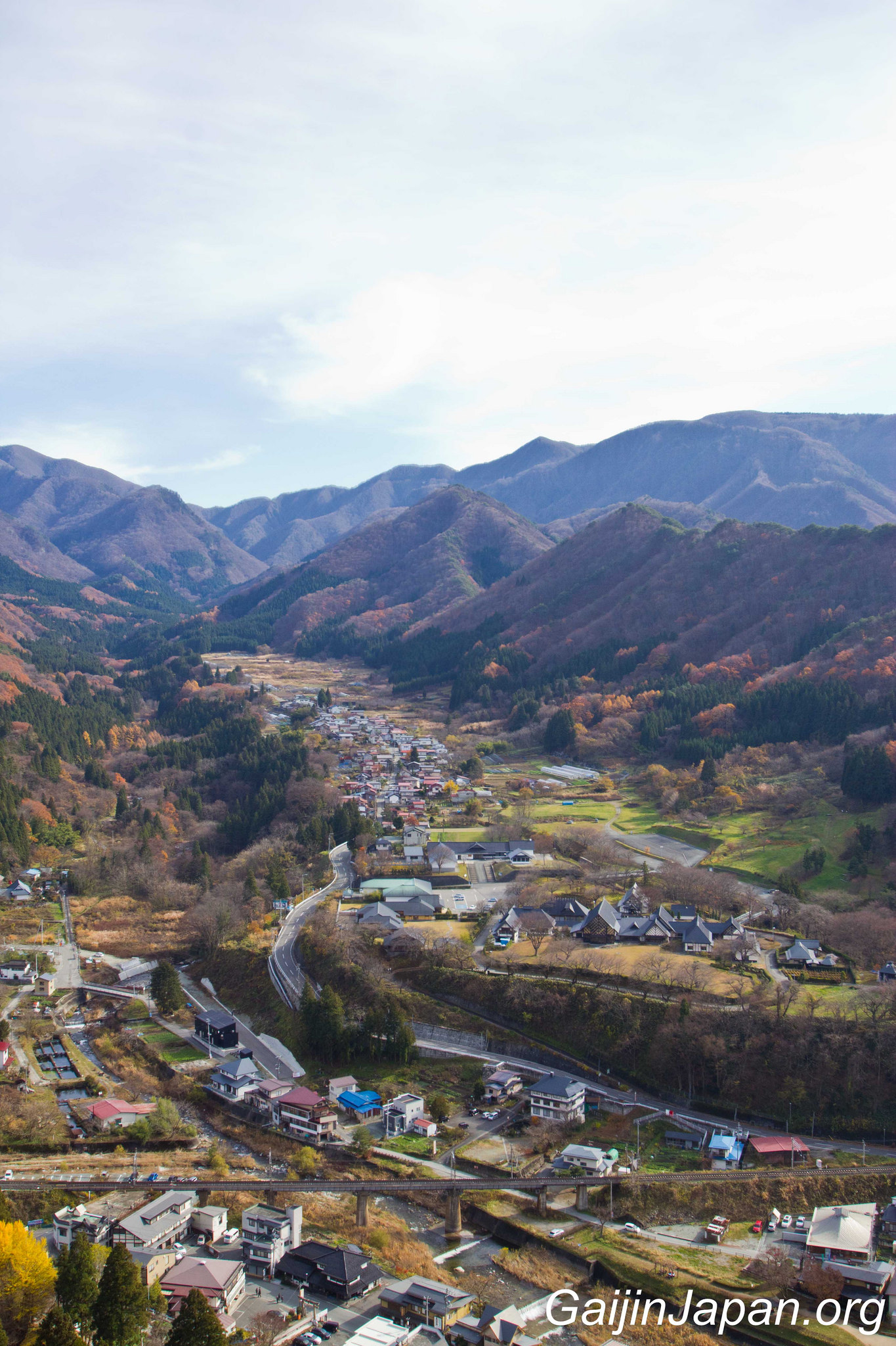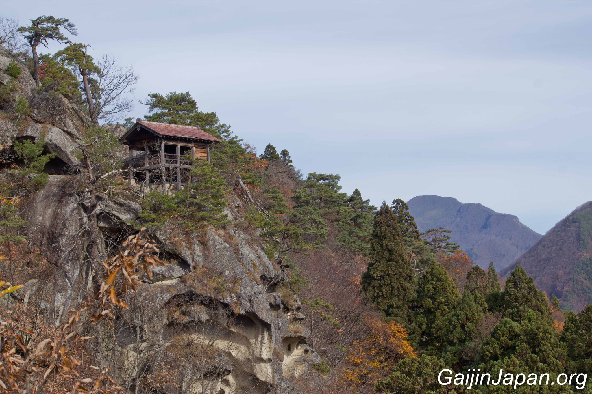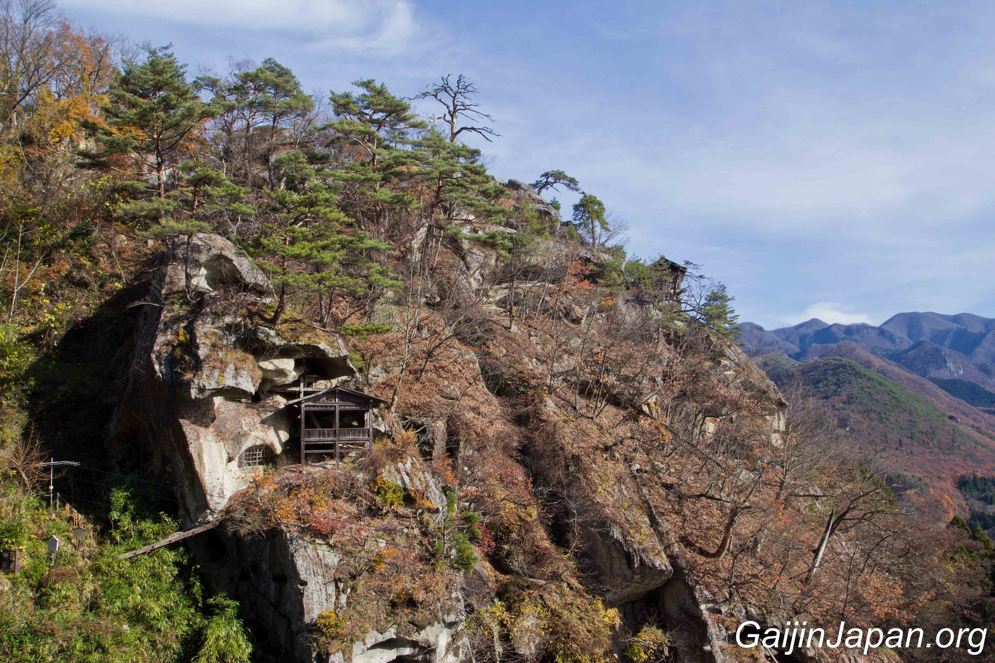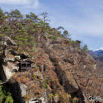 Une fois au sommet, on peut voir les autres bâtiments qui composent ce temple et surtout admirer la superbe vue sur la rivière Tachiya, la vallée avoisinante et les montagnes qui entourent le tout. Un paysage époustouflant et relaxant qui nous émerveille après quelques efforts à monter des marches entourées d’arbres cachant la vue.