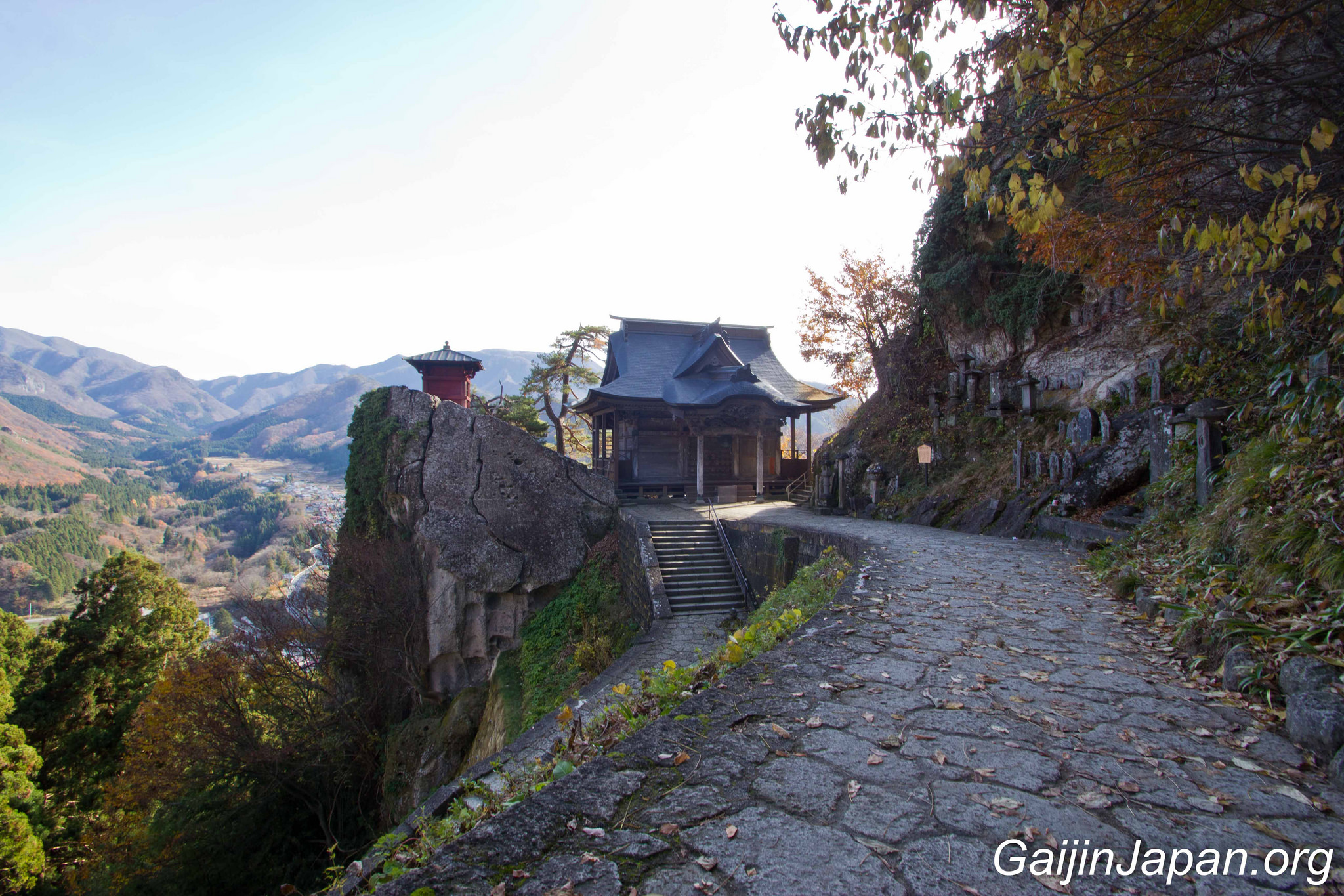 Ensuite, depuis la station de Yamadera il vous suffira de marcher 5 mn environ pour attendre la base du temple Yama-dera et commencer votre ascension. Le temple est ouvert tous les jours de l’année de 08H00 à 17H00 et il vous faudra payer 300 Yens d’entrée pour accéder à la partie supérieure.