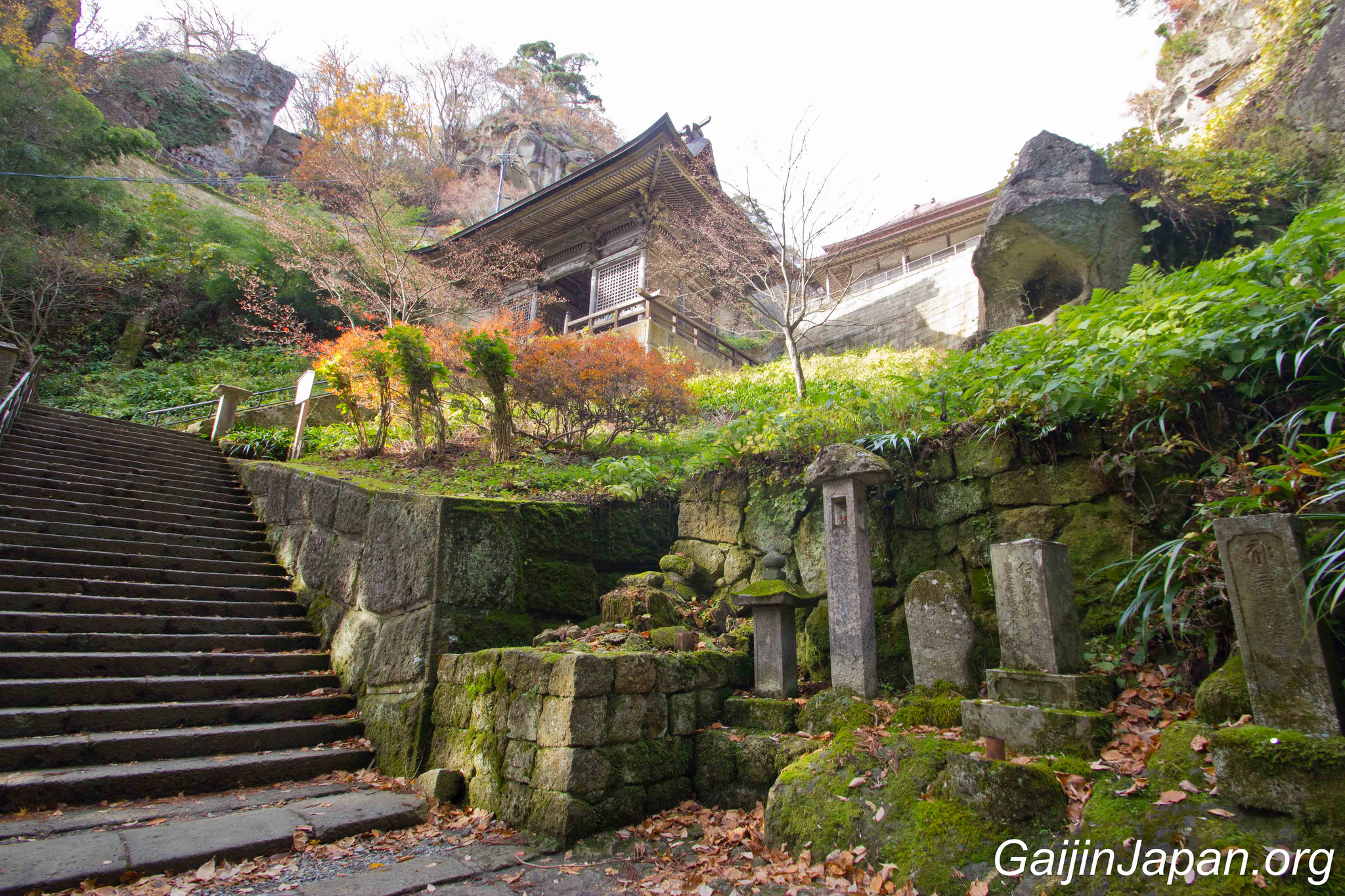 Une fois à la base de ce temple, on peut y voir quelques uns des bâtiments principaux tels que le Konponchu-do. Si on ne sait pas à quoi s’attendre et que l’on ne lit pas le japonais, on pourrait croire que le Yama-dera se limite à ces quelques édifices. Mais la réalité est toute autre.