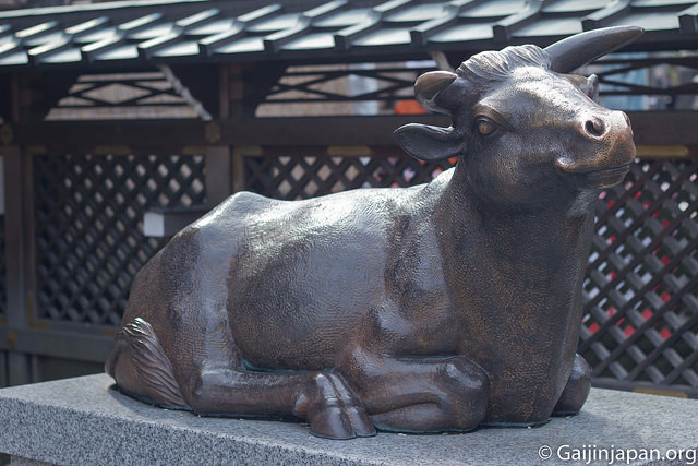 – caresser la statue en bronze de la vache, car elle est réputée comme étant la servante de la divinité Tenjin. Il paraît que la caresser aide à guérir les maux physiques. Par exemple, si vous êtes blessé au genou, il faudra lui caresser le sien pour être guérit plus rapidement.